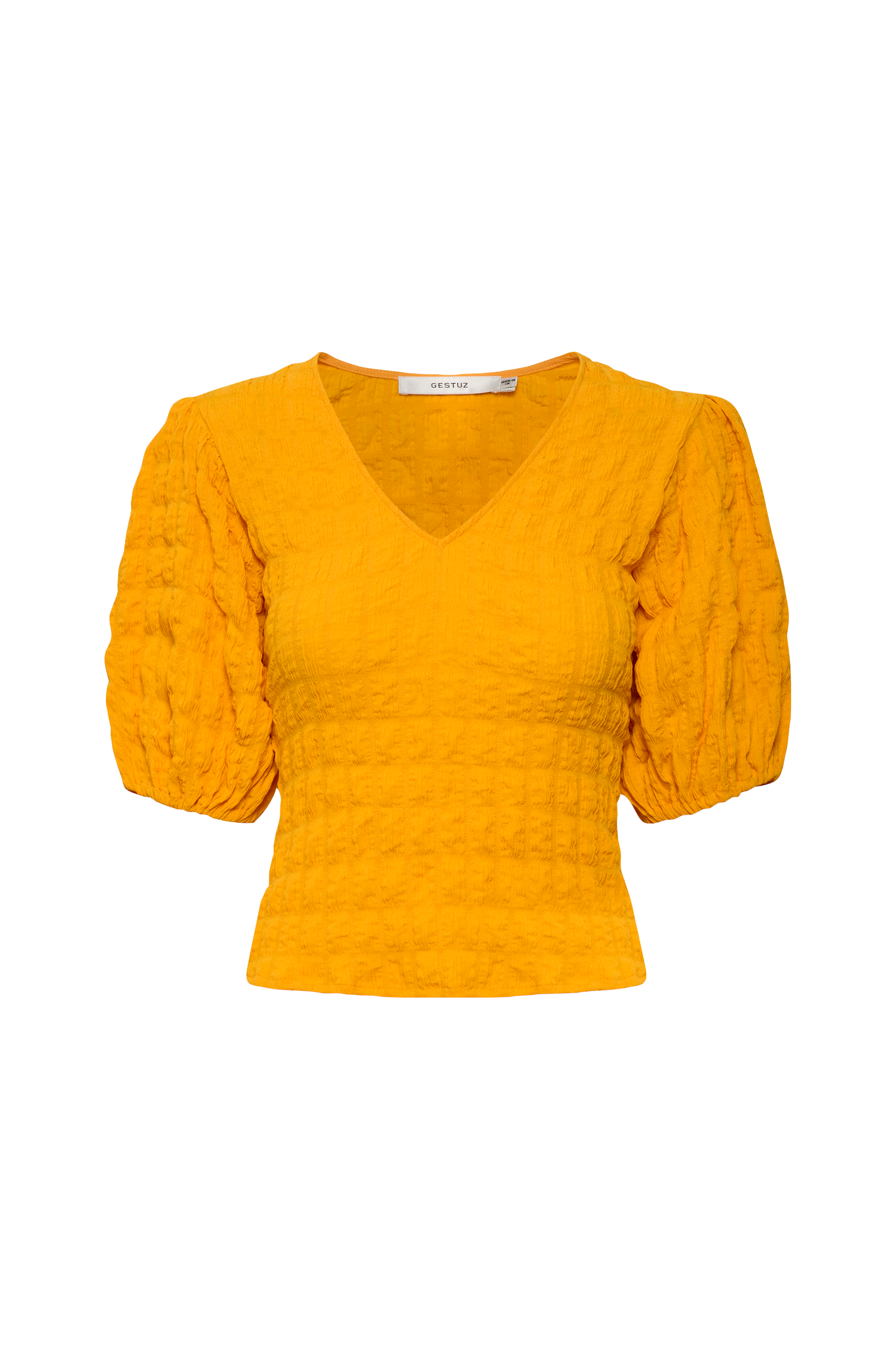 • V-hals snitt• Halvlange bobleermer• Strukturmønster• Stretchkvalitet