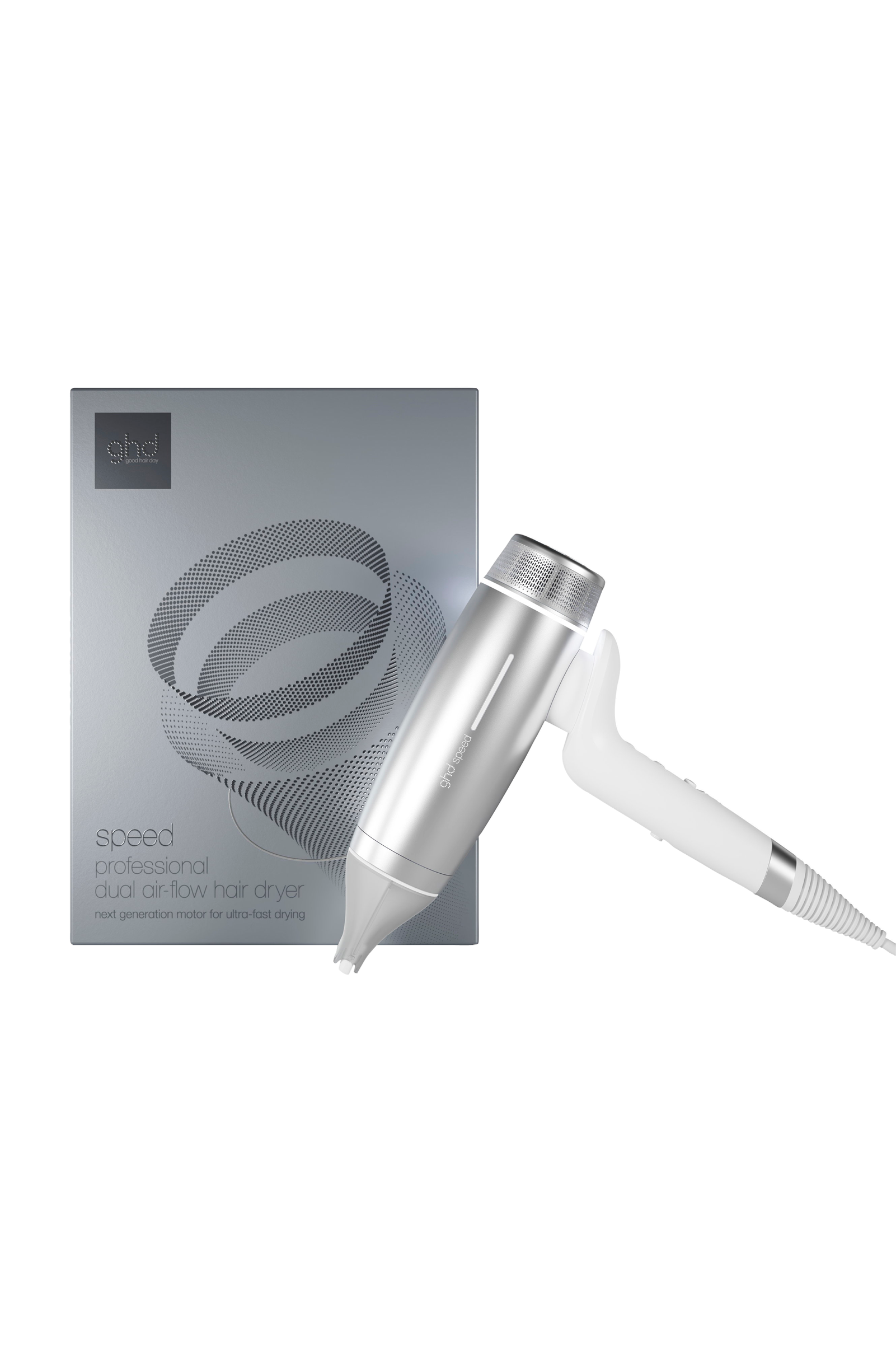 Forvandle stylingrutinen din med ultrahurtig tørking og feilfrie salongverdige resultater. Med vår raskeste nestegenerasjonsmotor som spinner med 118 000 o/min², produserer ghd Speed en høytrykksluftstrøm på opptil 174 km/t, og tørker håret raskt fra rot til topp med den perfekte balansen mellom hastighet og kraft med kontroll. Utviklet av våre ingeniører i samarbeid med ghd profesjonelle stylister, og over 4000 forbrukere var involvert i testingen og utviklingen av ghd Speed. Utviklet for å levere uslåelig rask tørking - Våre eksperter satte hundrevis av hårføner på prøve, og ingen var raskere enn ghd Speed