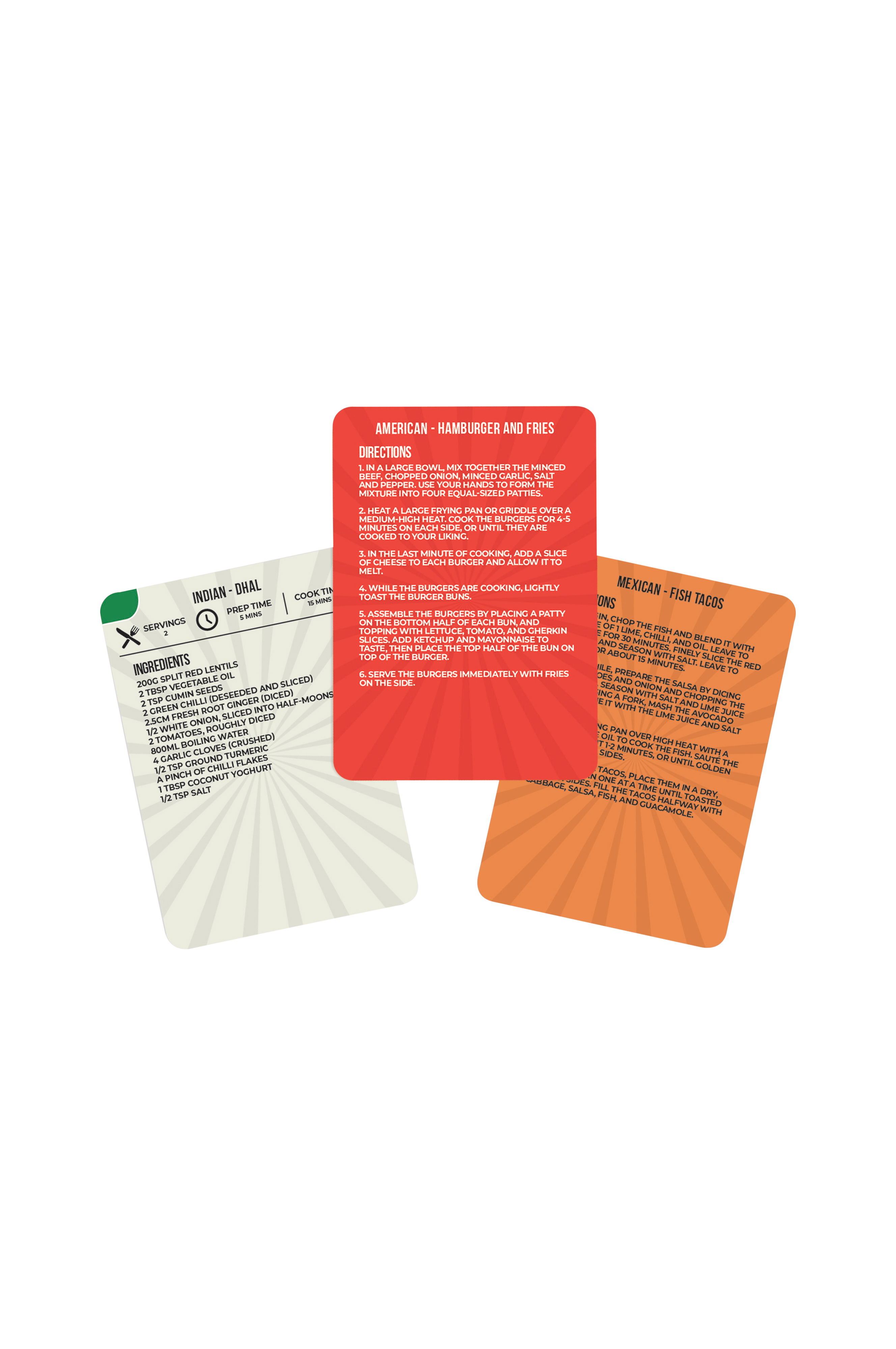 Elsker du å unne deg en takeaway etter en lang dag? Hvorfor ikke prøve å lage din egen hjemme med dette settet med 100 recipe kort! De vil ha all smaken og nytelsen av en ekte takeaway, men uten kalorier, og du får gleden av å lage den selv.