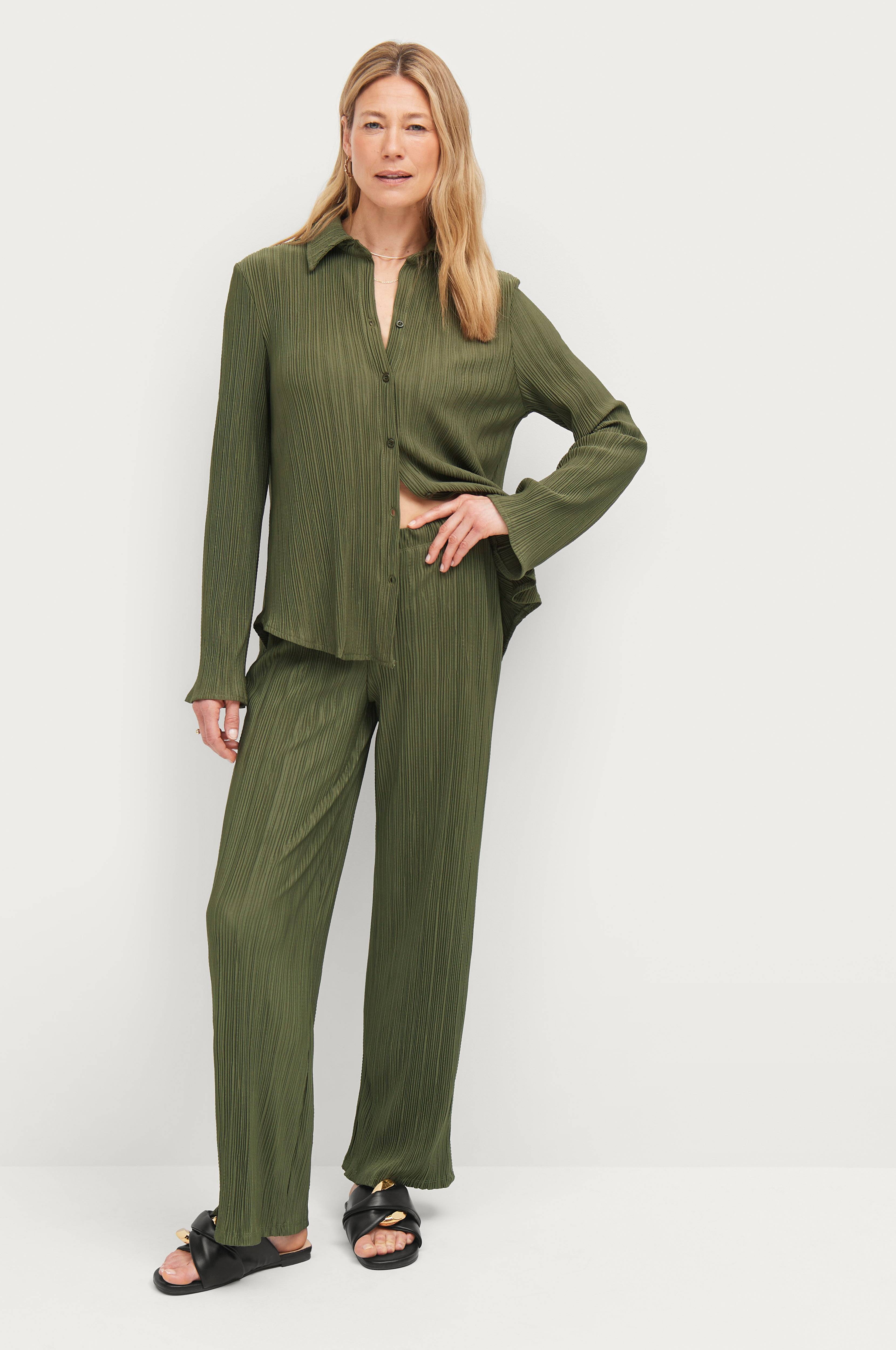 • Brede, rette bein• Elastisk midje• Laget av plissert jersey