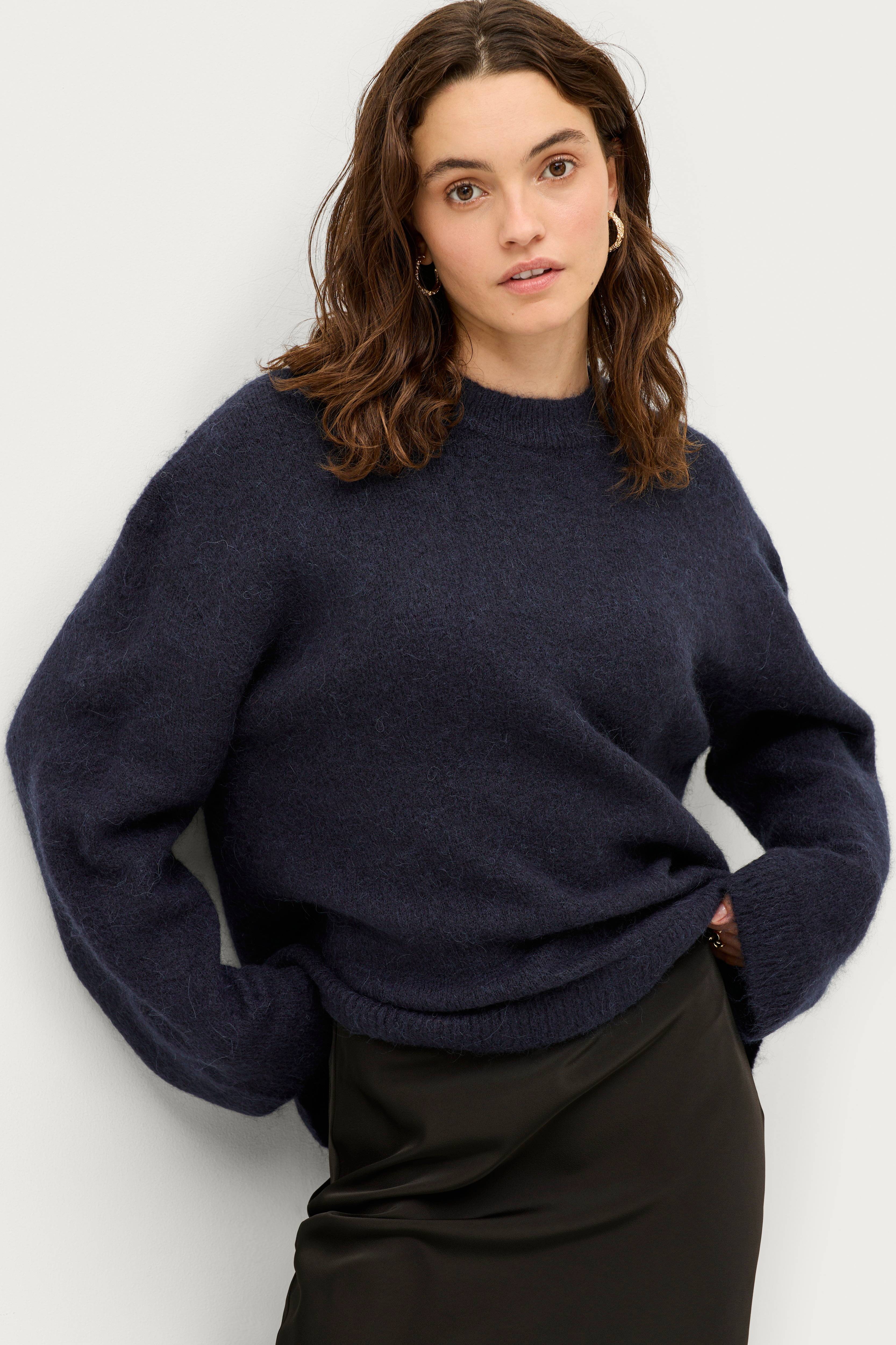 • Strikket genser i ullmiks• Ribbestrikket hals• Brede armer• Løs passform