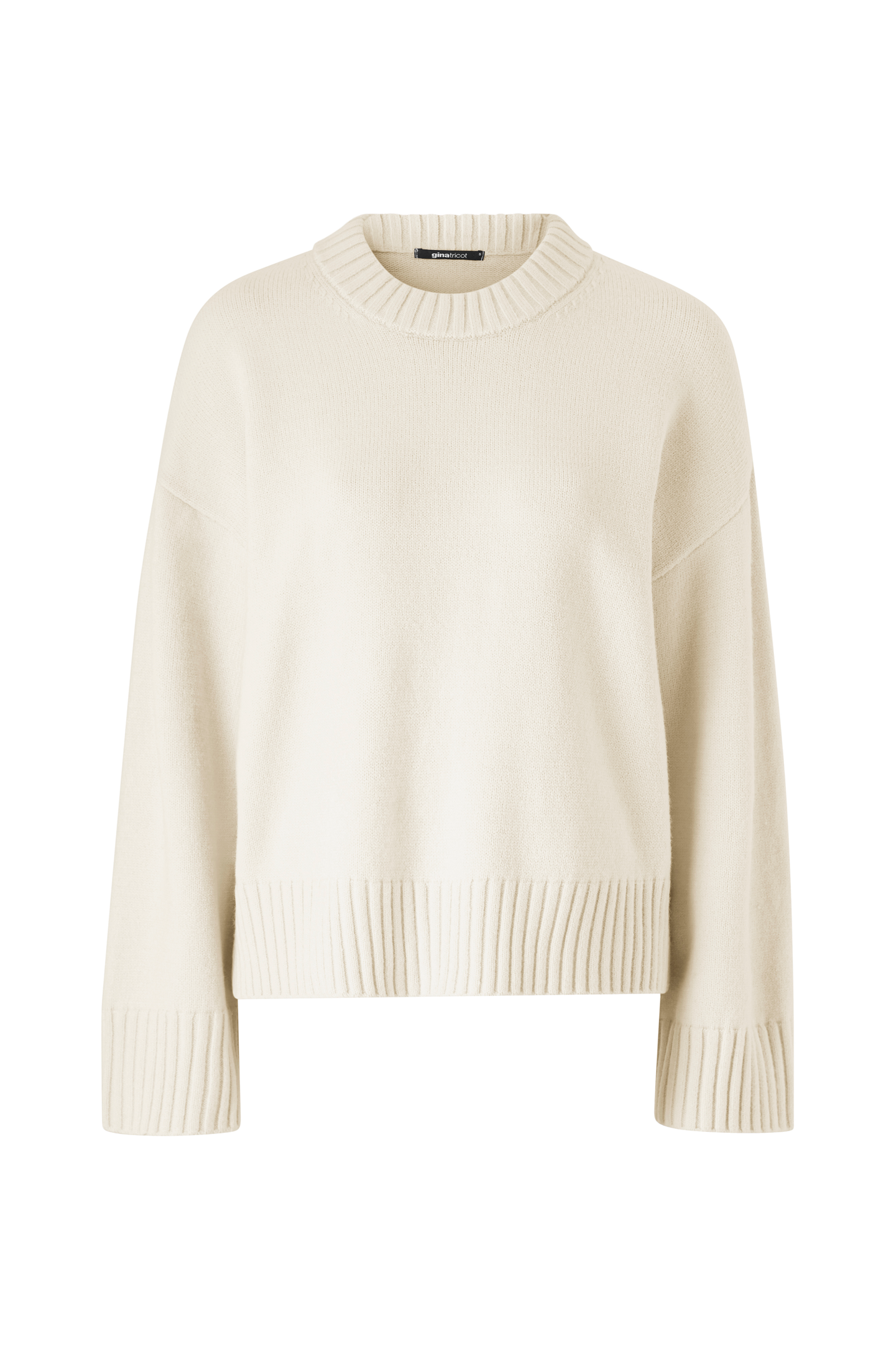 • Myk, finstrikket genser• Rund, ribbet hals• Bred ribbestrikk i ermeslutten og i nedre kant• Utringede skuldre• Pluss-størrelser