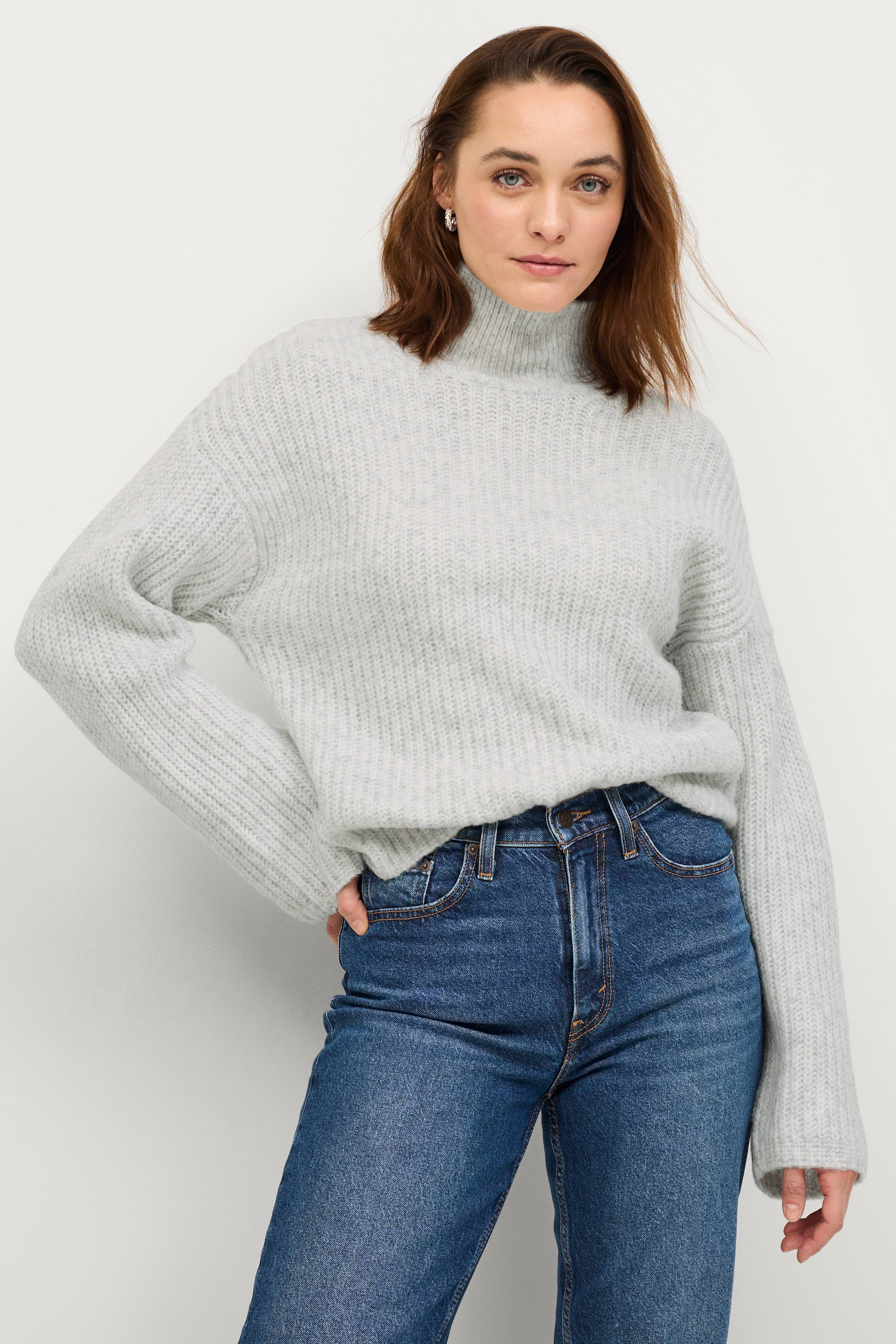• Grovstrikket genser• Løs passform• Høy krage• Utringede skuldre