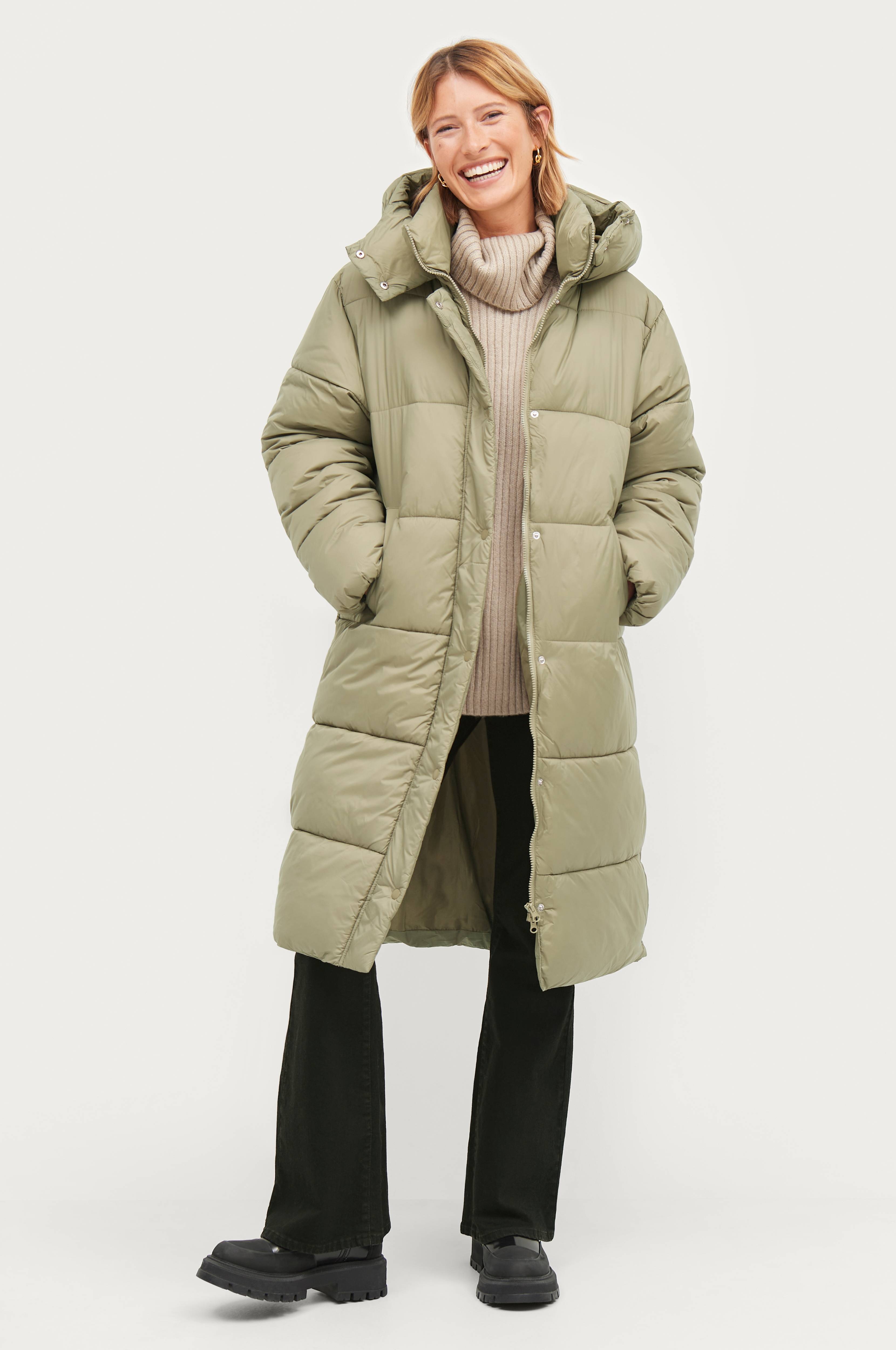 • Vattert, polstre jakke• Lang modell• Fast hette• Høy krage• To-veis glidelås• Klafflomme med trykknapper• To lommer• Elastisk strikk i ermeslutten• Splitt med trykknapper nede i sidene• Lengde: 110 cm i størrelse S