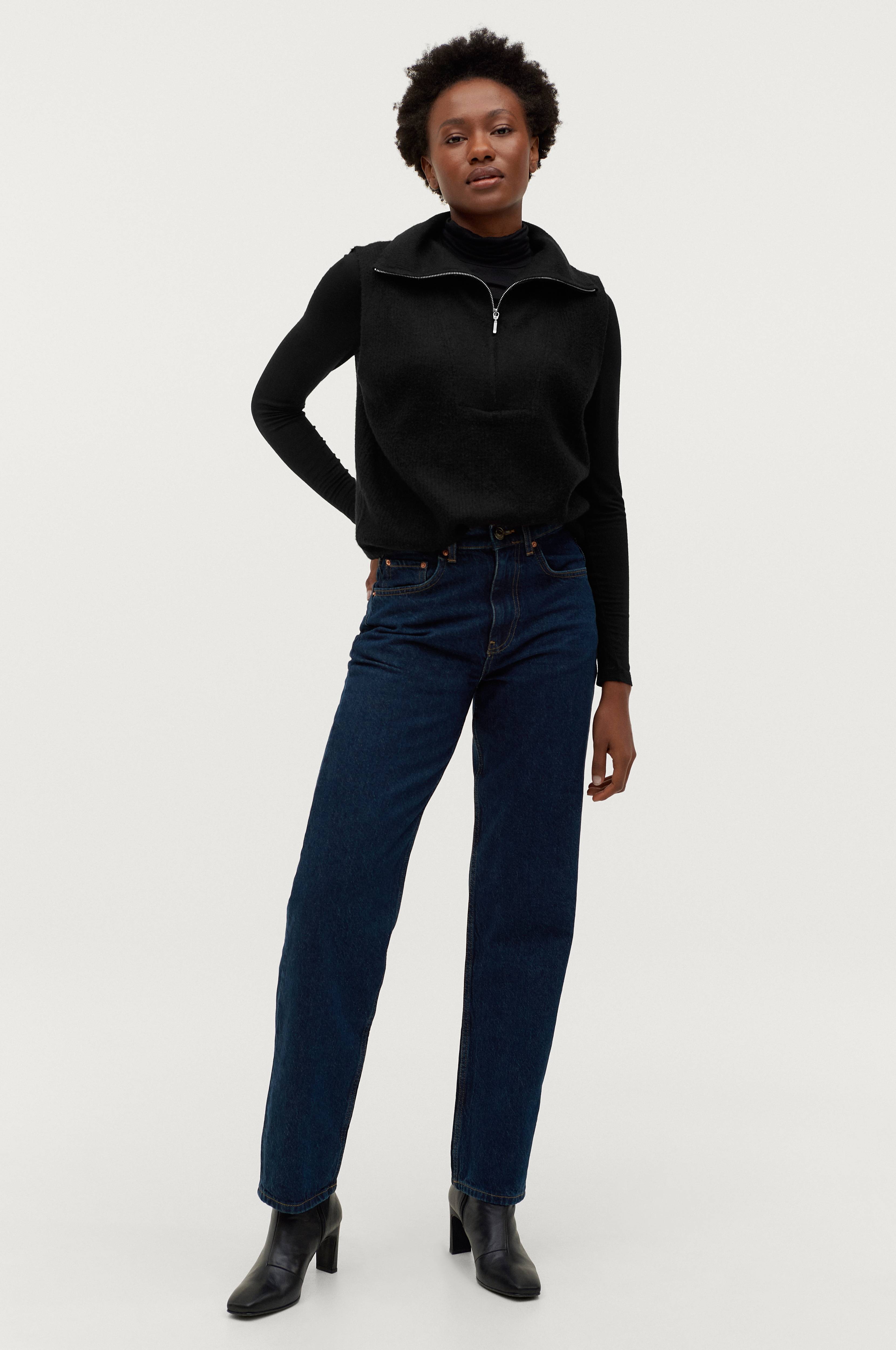 • Høy midje • Femlommemodell • Lynlås • Løs passform • Produktet inneholder økologisk bomull som er dyrket uten kjemiske sprøytemidler, kunstgjødsel og genmodifiserte avlinger (GMO). Det innebærer et sunnere arbeidsmiljø for bønder og et bedre jordsmonn.