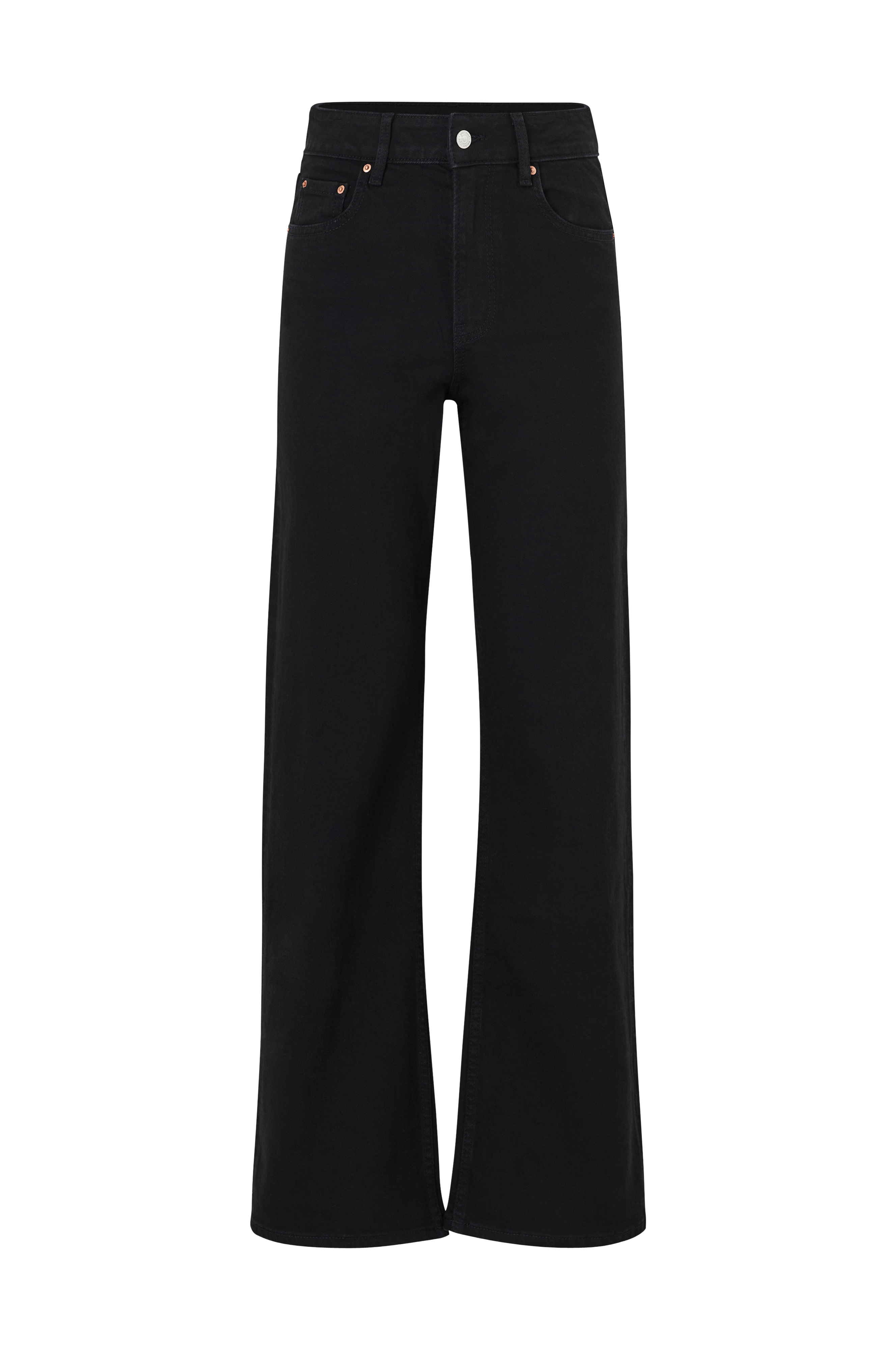 • Brede bein• Høy midje• Femlommemodell• Gylf med glidelås• Stretch-denim• Indre benlengde: 81 cm i størrelse 36
