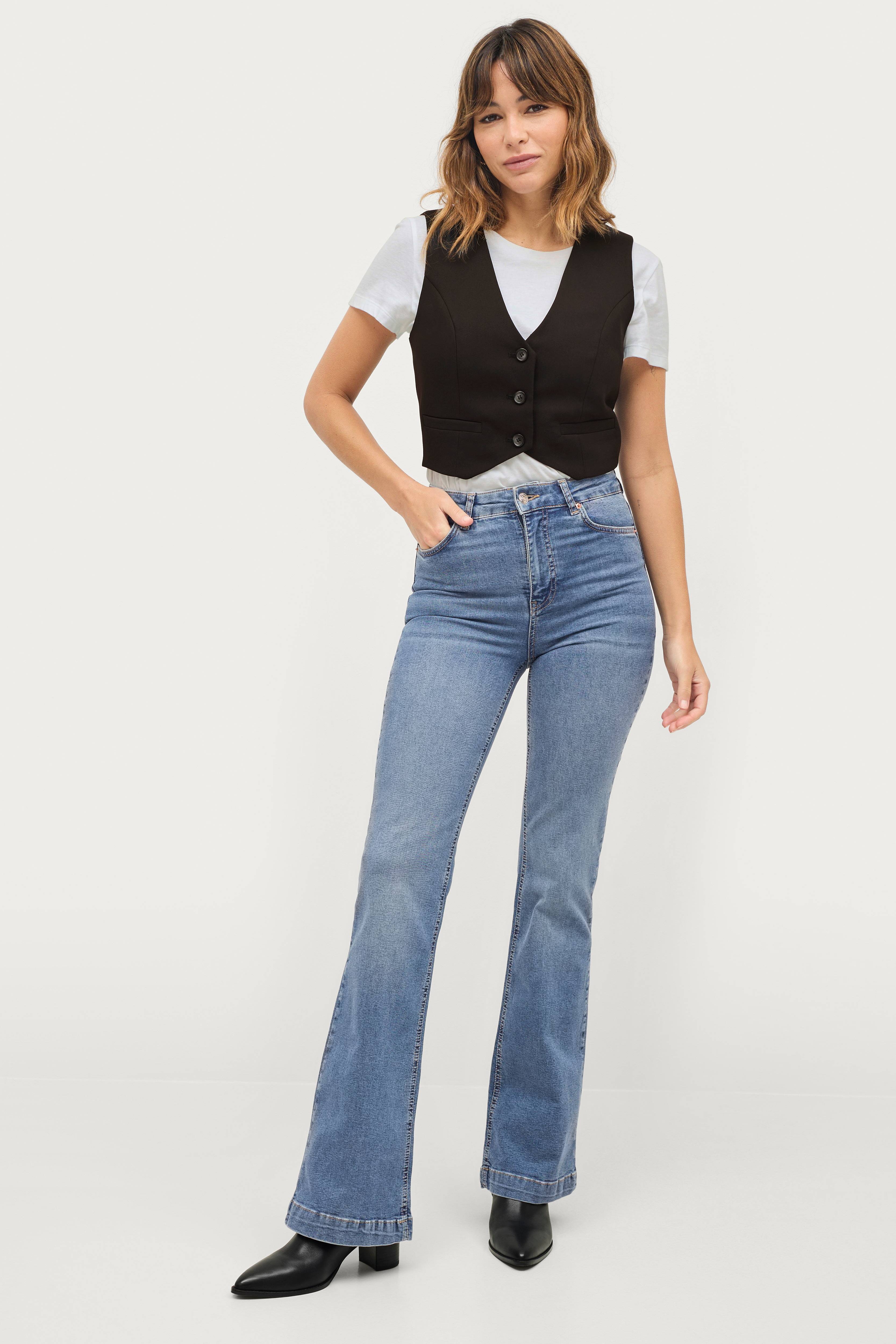 • Smal femlommemodell i stretch denim • Høy midje med lynlås • Utsvingte benender • Ellos samarbeider med Better Cotton for å forbedre den globale bomullsdyrkingen. Better Cotton er en global ideell organisasjon som utdanner bomullsbønder innen metoder for mer bærekraftig bomullsdyrking, og jobber for mer effektiv bruk av vann og redusert bruk av sprøytemidler. Better Cotton gir forbedrede sosiale, økonomiske og miljømessige forhold for bomullsbønder. Ved å velge våre bomullsprodukter støtter du vår investering i Better Cottons misjon. Better Cotton kommer fra et system med massebalanse, og er ikke fysisk sporbar til sluttproduktet. Les mer om Better Cotton på bettercotton.org/learnmore.