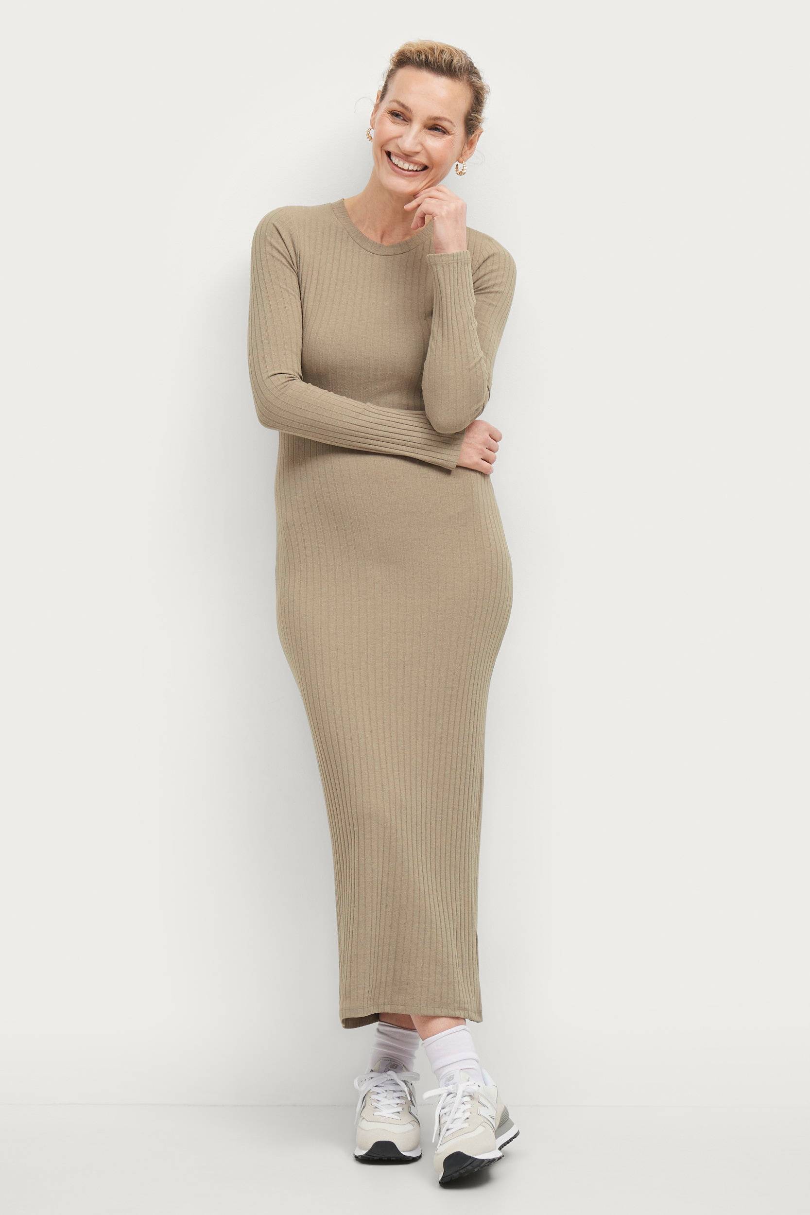 • Finstrikket, ribbet maxikjole• Rund hals• Langt erme• Lengde: 131 cm i størrelse S