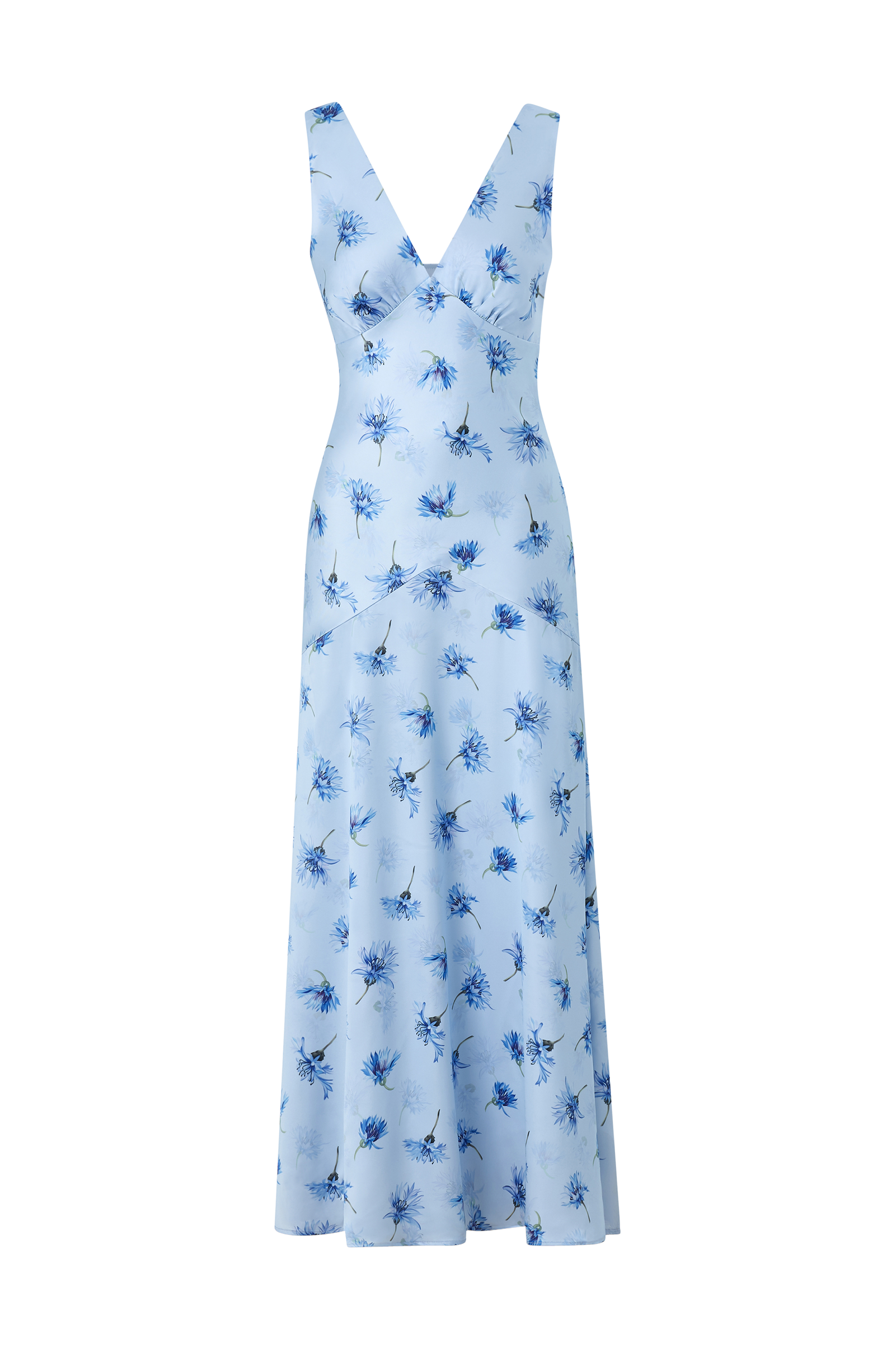 • Ermløs satengkjole• V-hals snitt• Rynke ved bysten• Skjult glidelås i ene siden• Lengde: 142 cm i størrelse 36