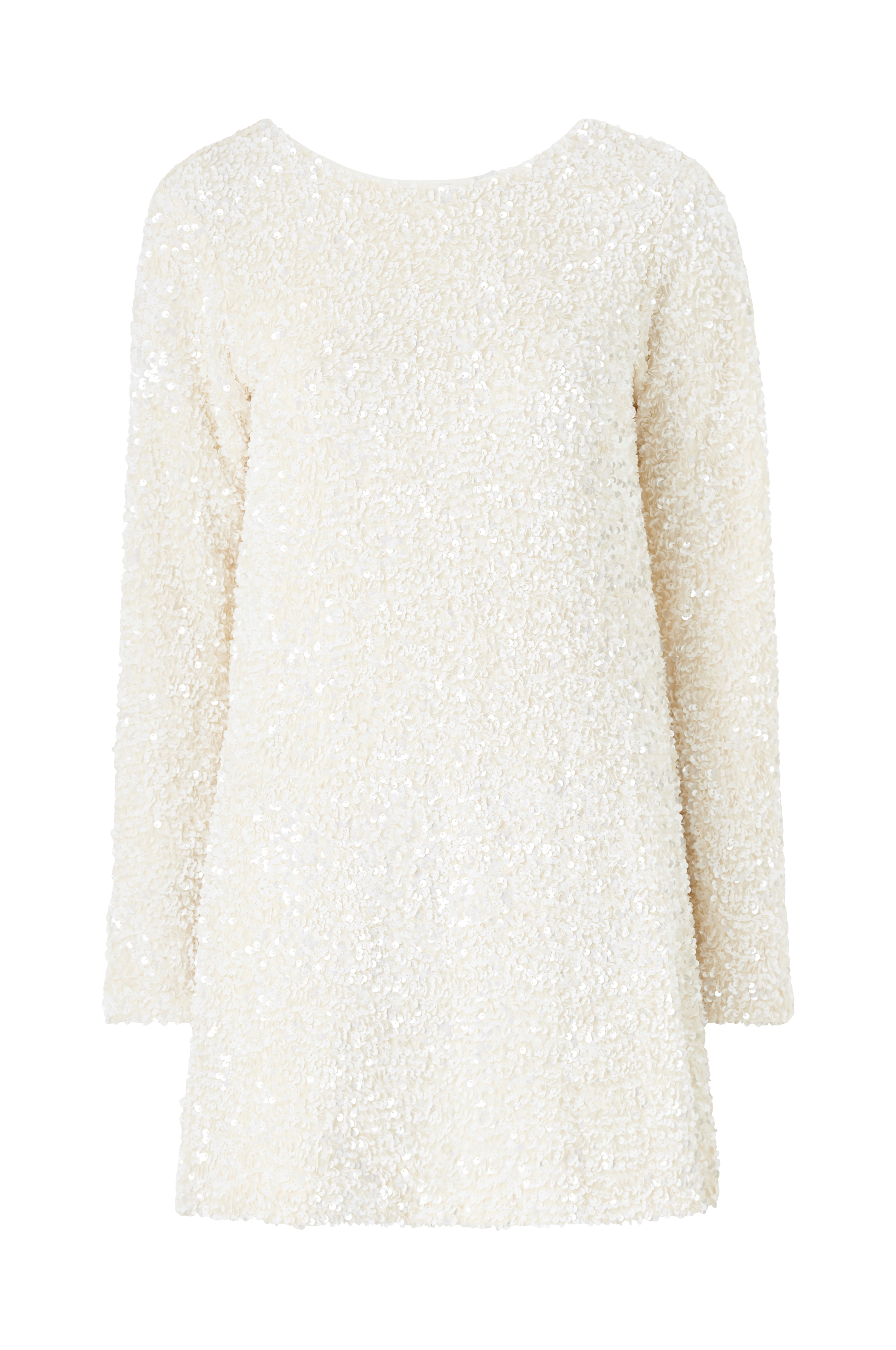 • Mini, glitrende plajettkjole med lange armer