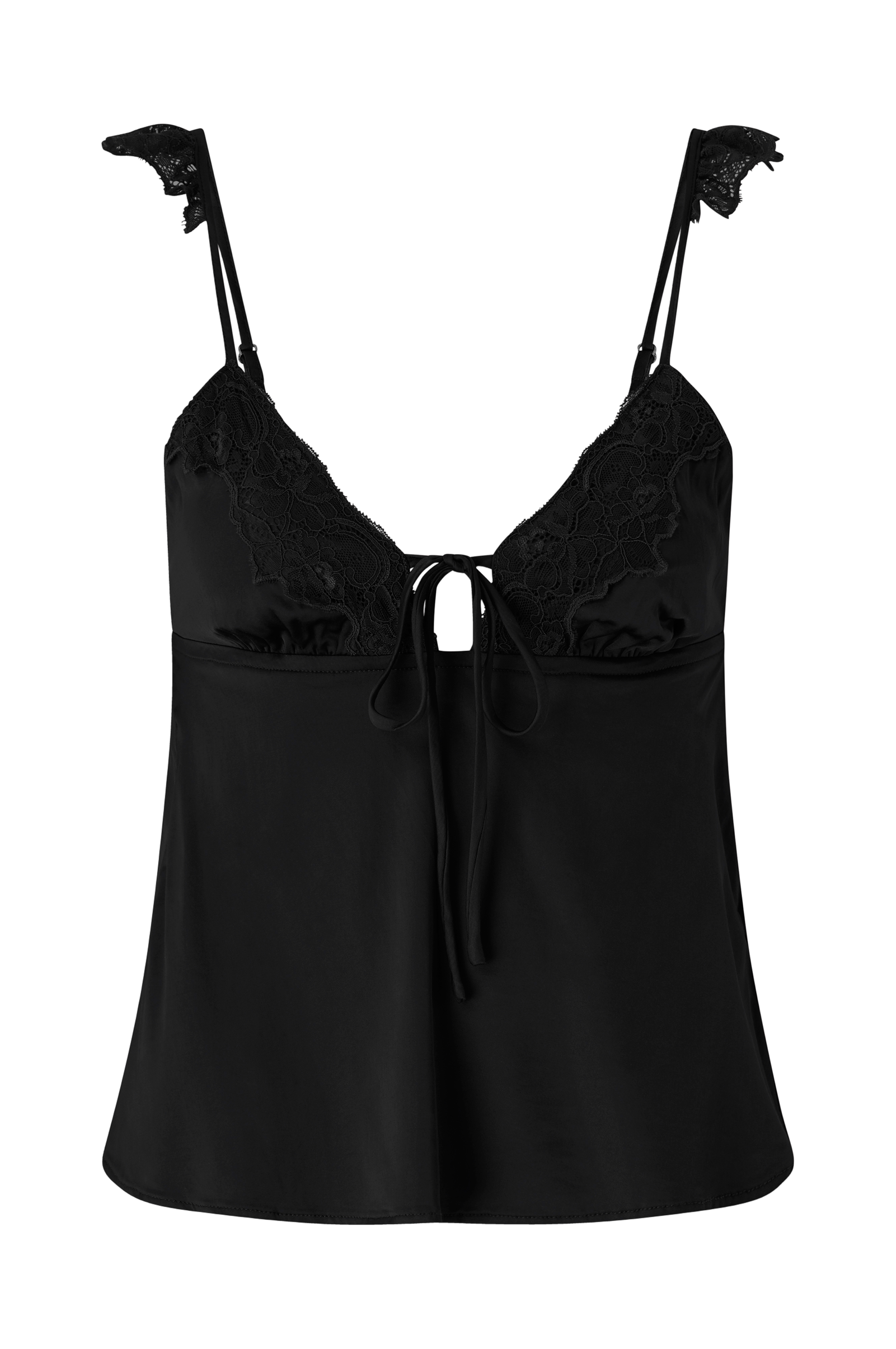 • Ermløs pyjamastopp i sateng• Tynne, justerbare skulderstropper med blonder på toppen• Blonder på halslinjen med knytbar tråd