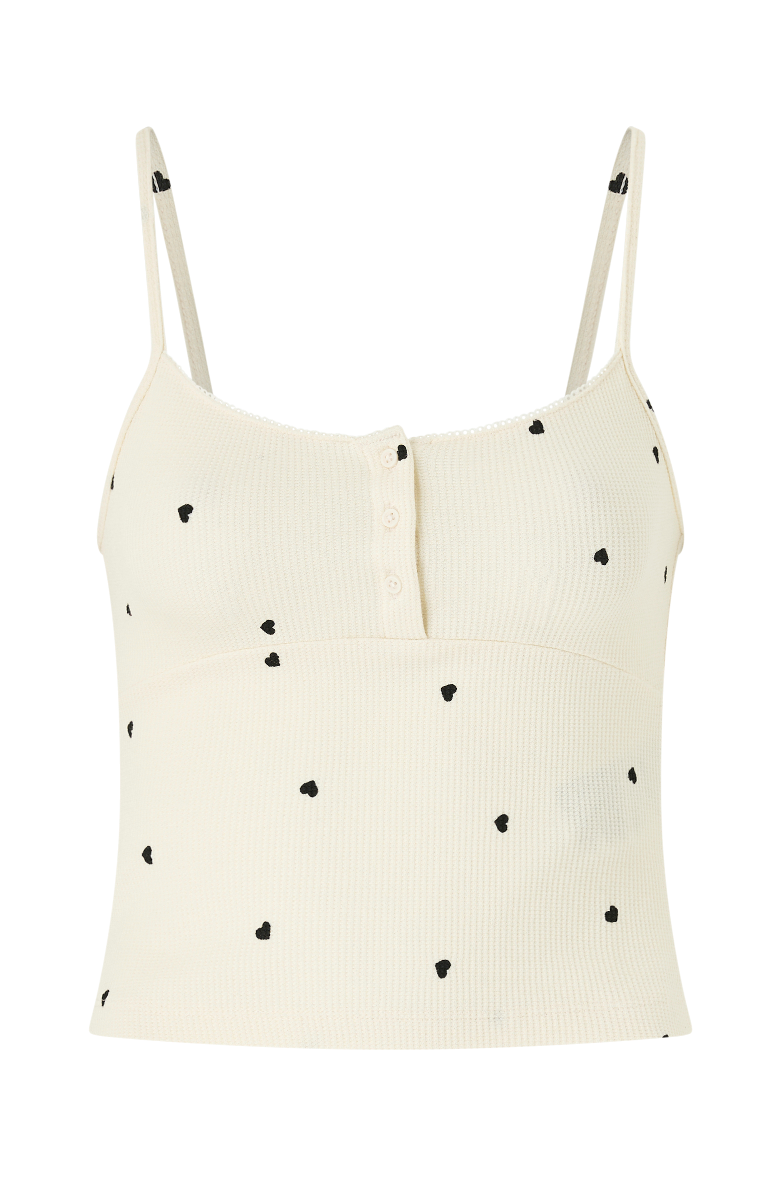 • Myk singlet med knappelukking• Firkantet hals• Skulderstropp• Avkortet lengde• Normal passform
