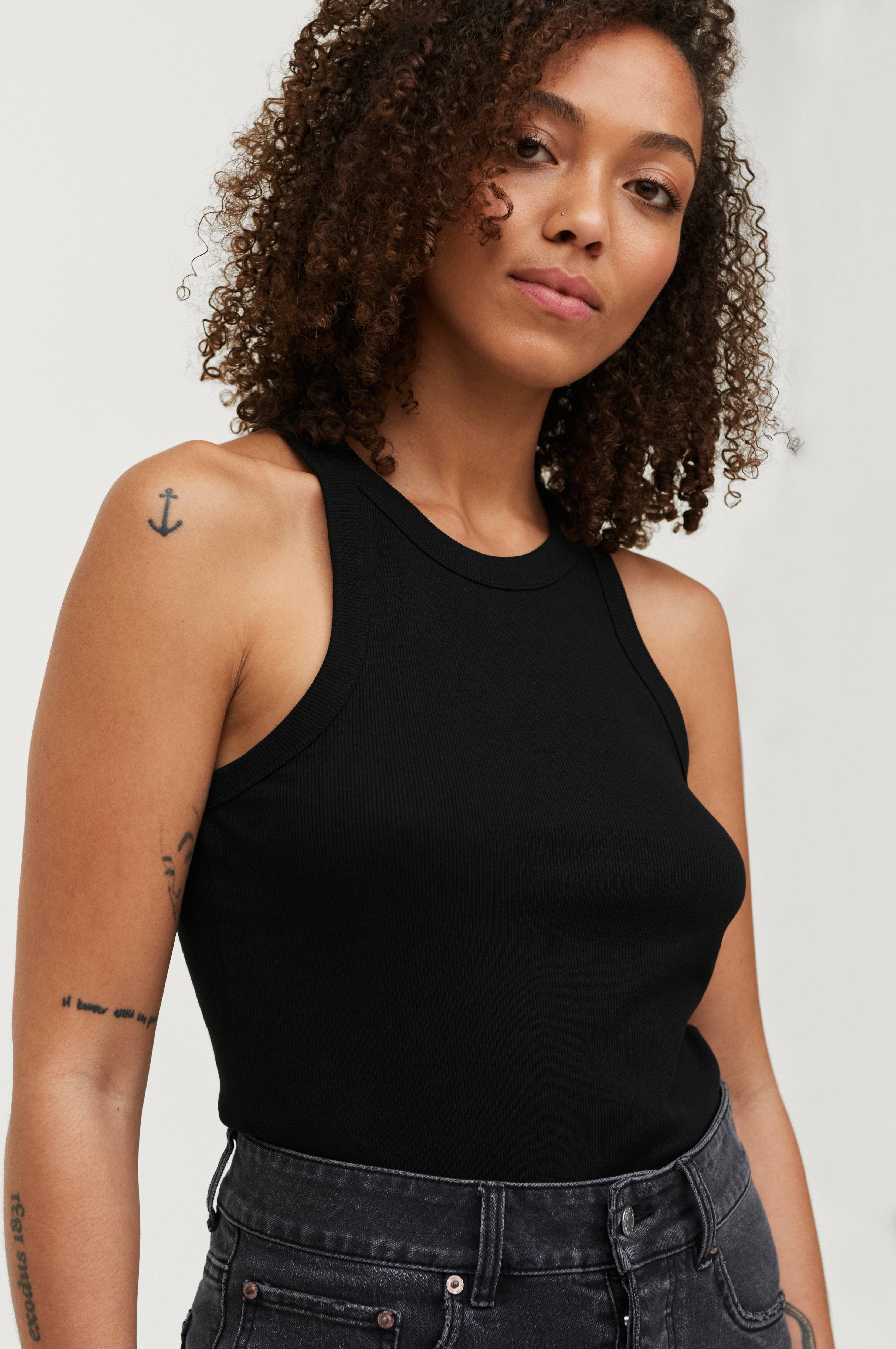 Ribbestrikket basistopp i bomullstrikot. Selges i 2-pakning.