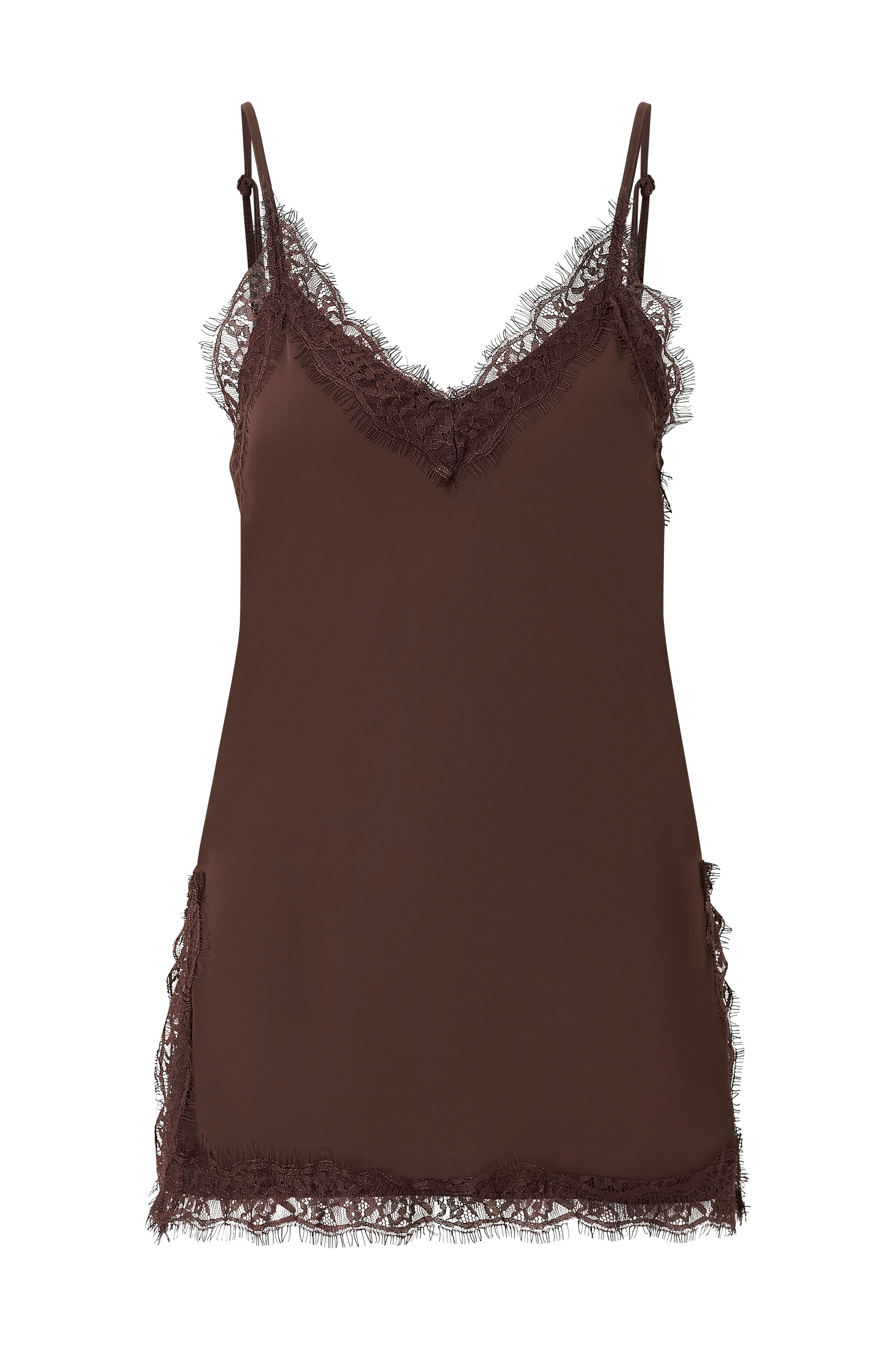 • Stretchy, ermløs topp med tynne skulderstropper• V-formet hals med blondekant• Hem i blonde