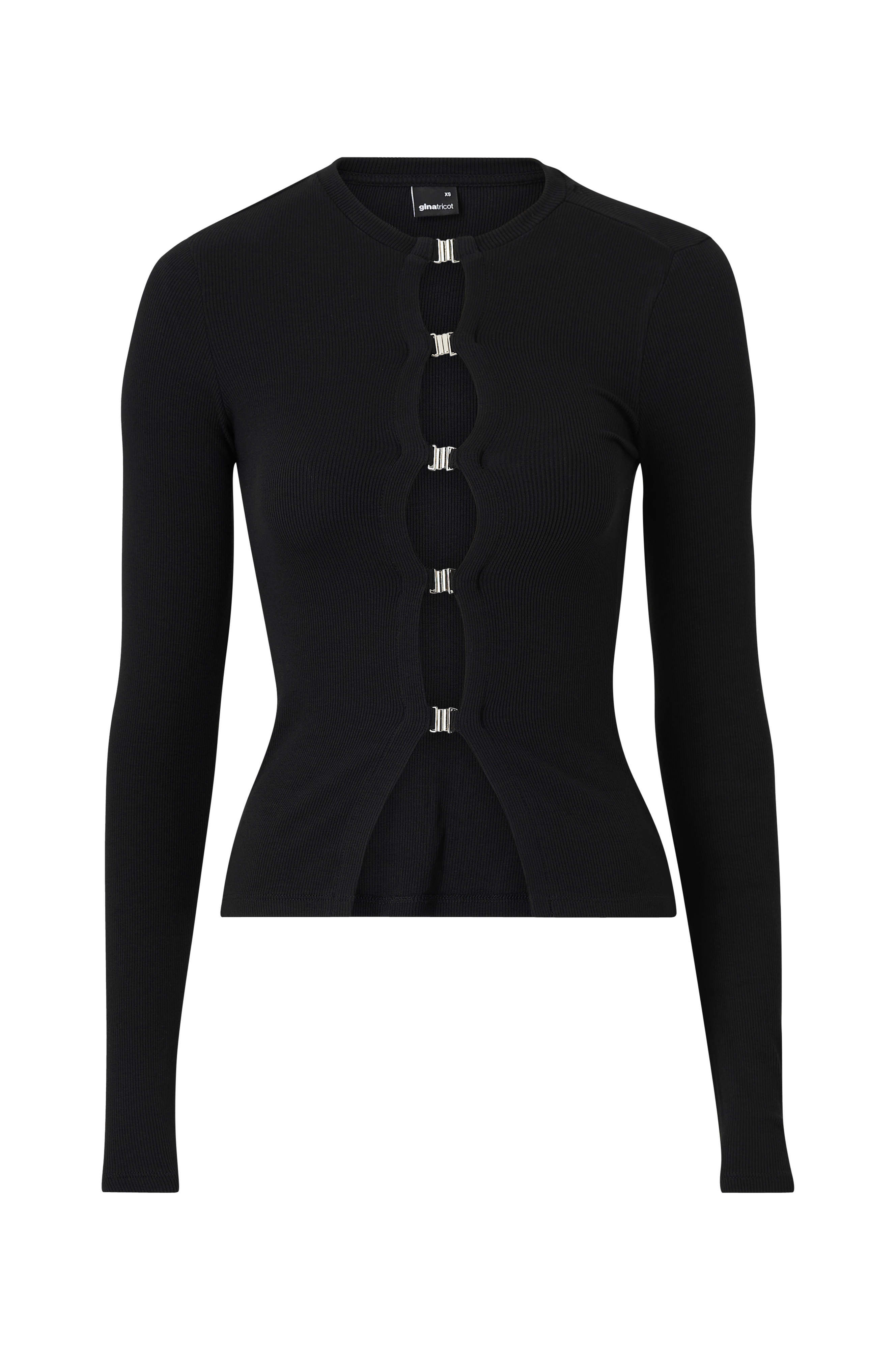 • Ribbet, langermet topp med figurnær passform passform• Rund hals• Lukning med spenner foran