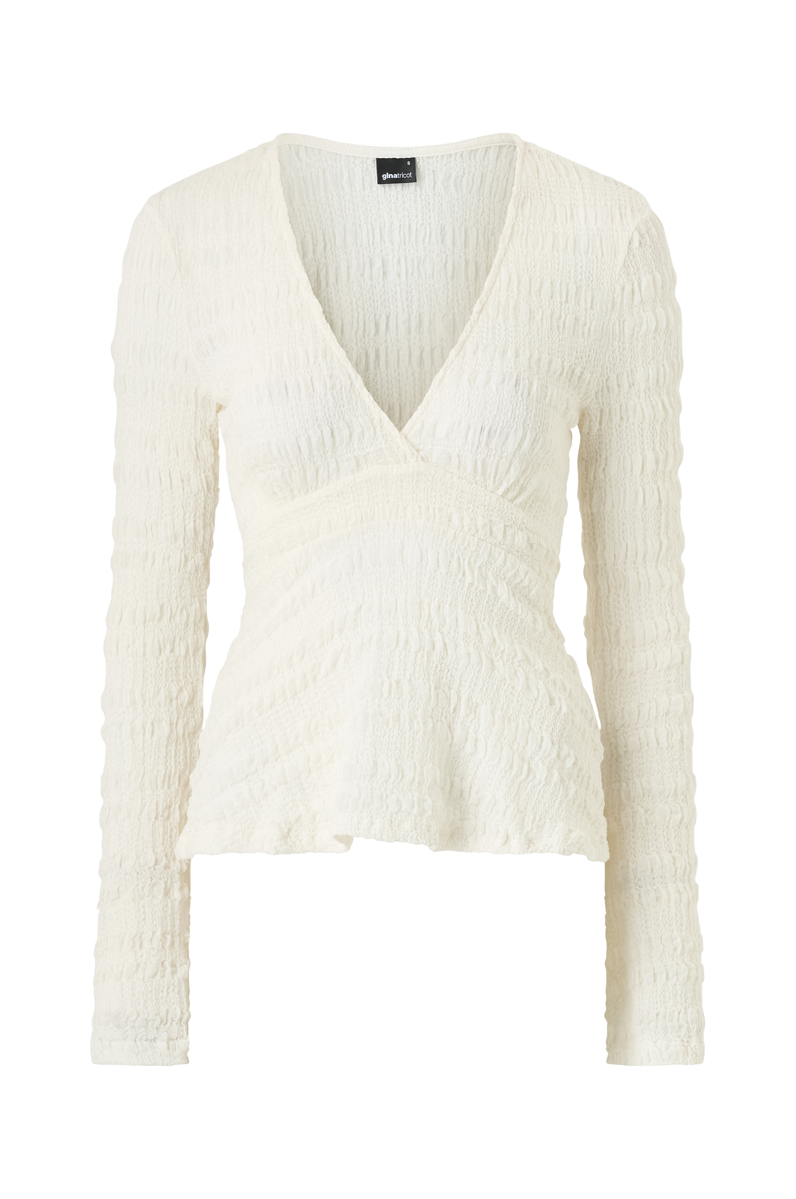 • Myk, stretchy topp• V-hals snitt• Lange trompetermer• Justerbar knyting i ryggen