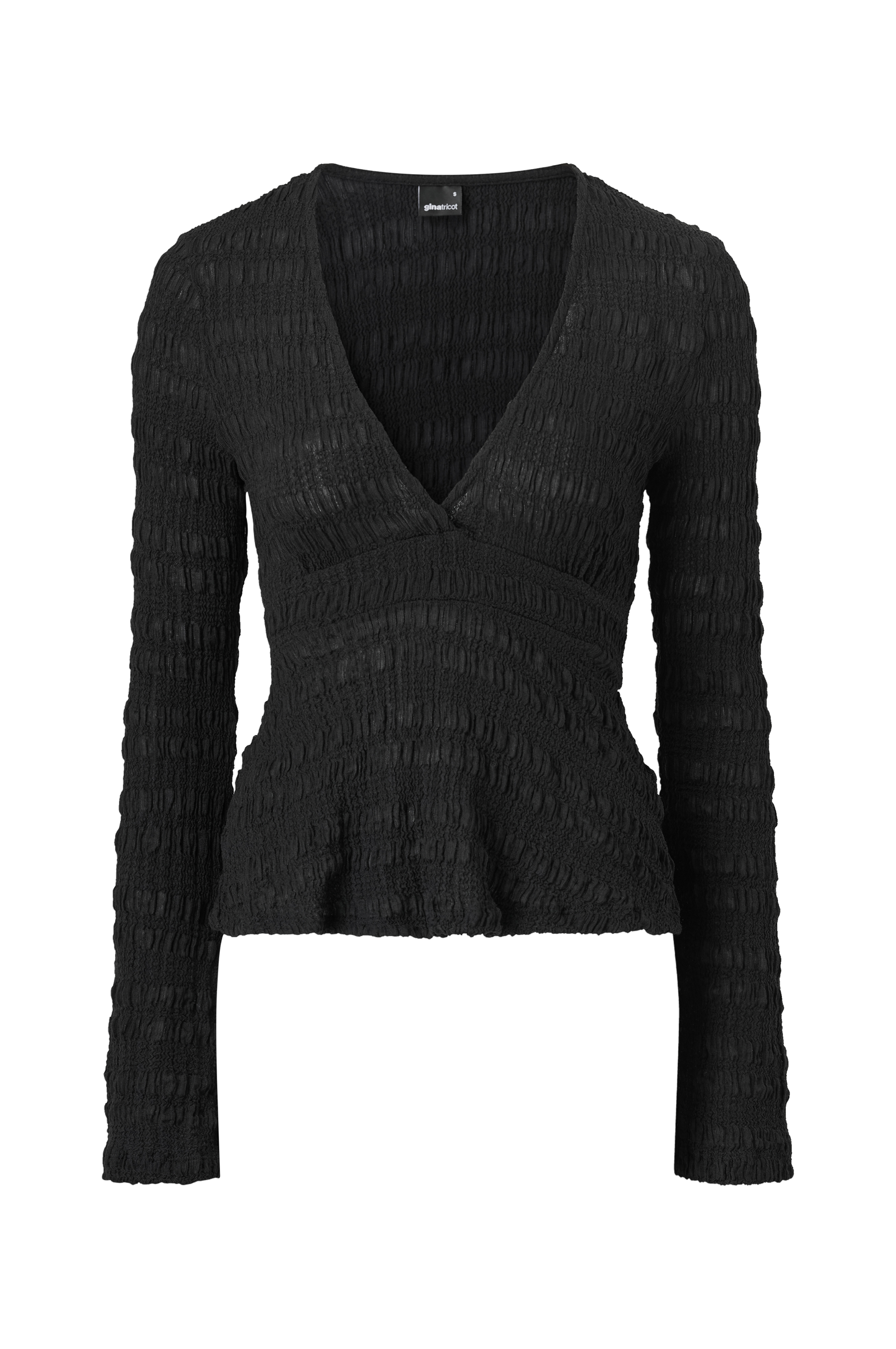 • Myk, stretchy topp• V-hals snitt• Lange trompetermer• Justerbar knyting i ryggen
