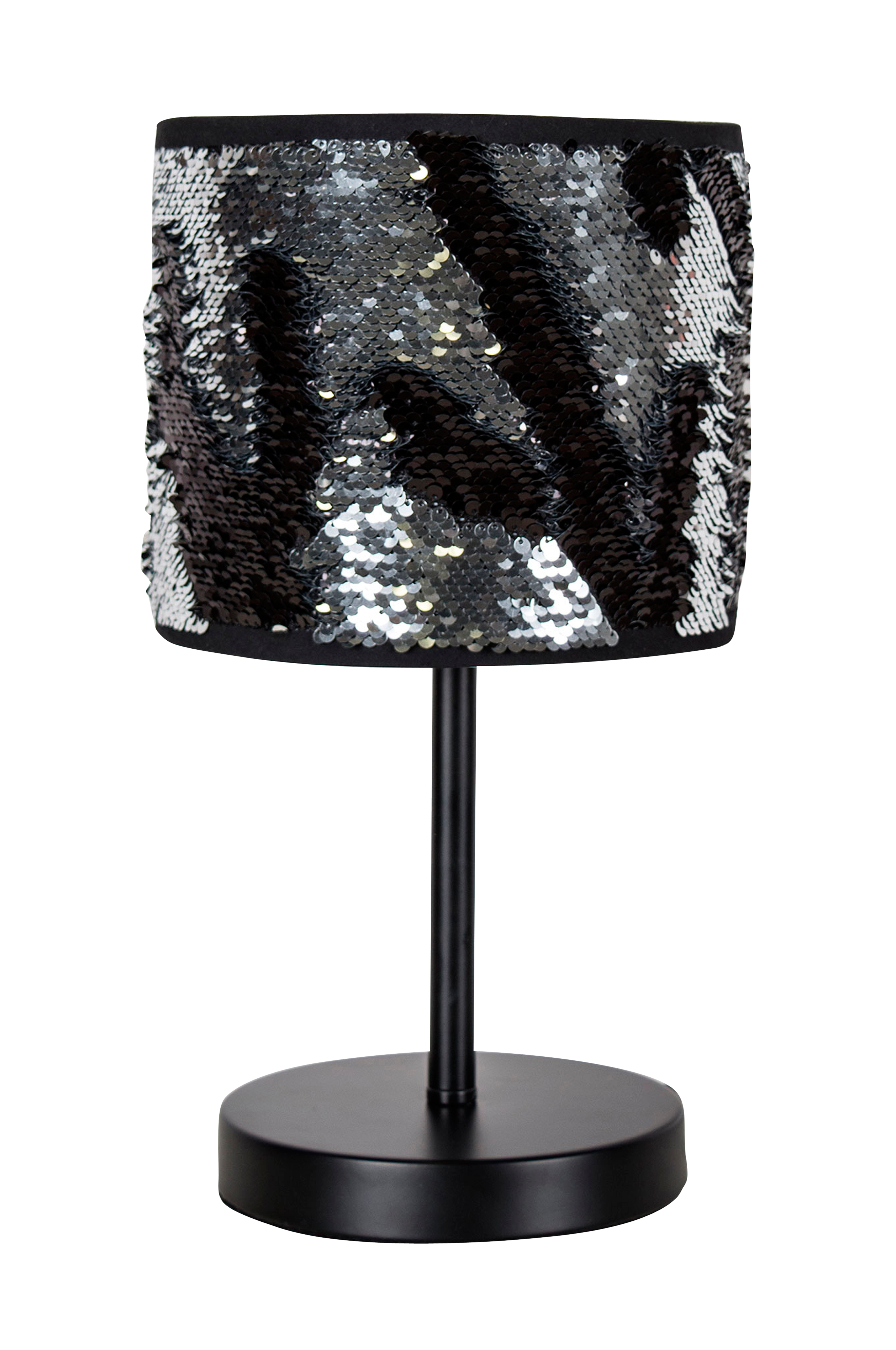 Bordlampe i metall med paljettskjerm. Arranger paljettene som du selv vil, ha den i helsvart eller gull og krom (finnes i to farger). Eller hvorfor ikke skrive et eget budskap med fingeren? Svart ledning med bryter. Høyde 34 cm og diameter 18 cm. Sokkel E14, maks 40W. Anbefalt lyspære: L160 Illumpære LED Opal. Design: Anna Andersson