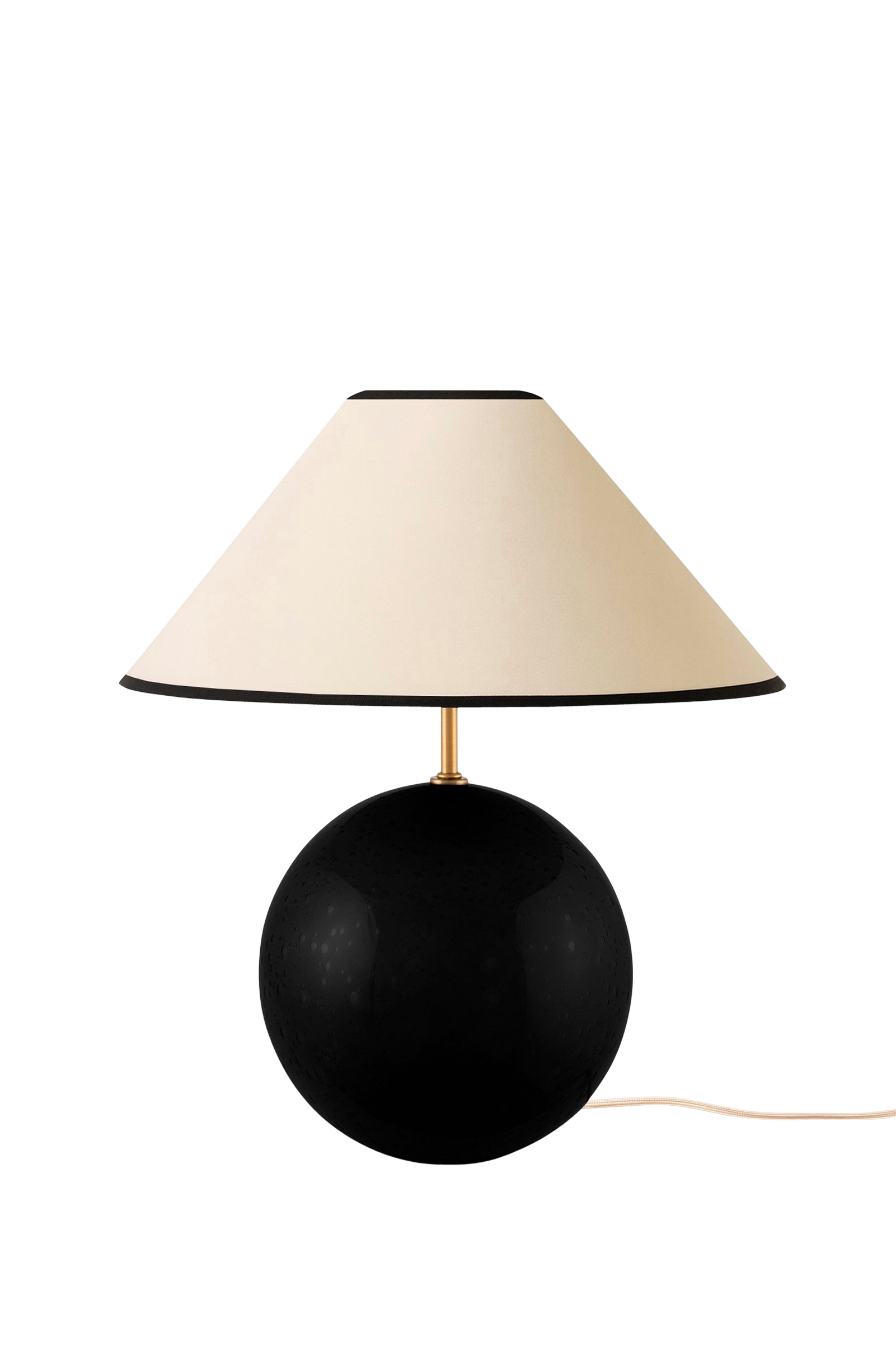 Iris er laget av farget glass med blåste luftbobler, og har en matchende lampeskjerm i bomull med en tildekket topp som matcher lampefoten. Lampen er litt større i størrelsen og er ideell å plassere på et sidebord, en større kommode eller i et dypere vindu. Iris har en 200 cm lang beige, perlemorskinnende tekstilkabel med bryter og støpsel. Vær oppmerksom på at luftboblene i glasset varierer i størrelse og skaper et unikt mønster for hver lampe, så lampen du har kan avvike noe fra bildene. Lampen er kompatibel med dimmer. Lyskilde er ikke inkludert.