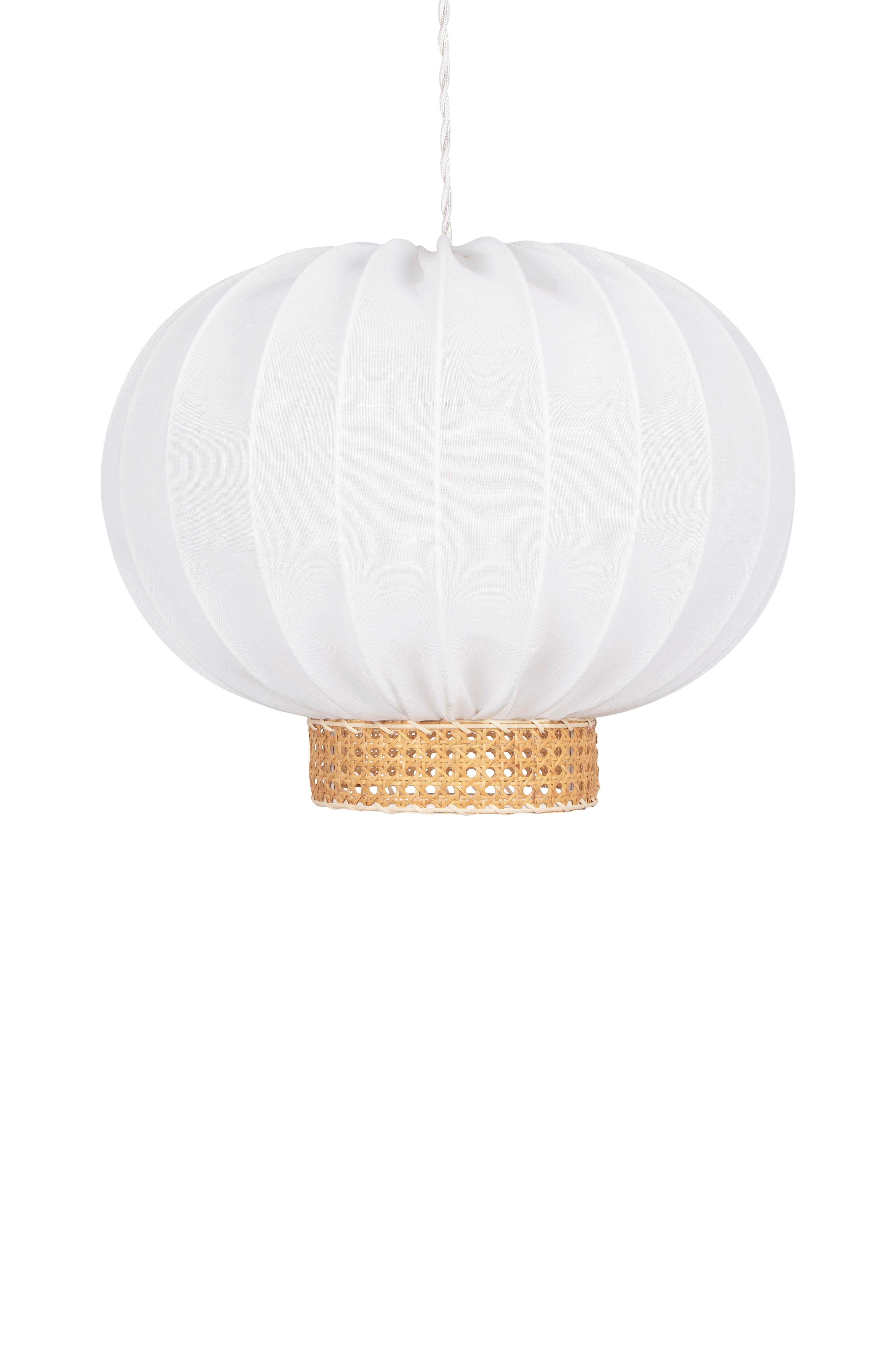 Yokohama er en myk og koselig pendel med inspirasjon fra asiatiske lyslykter. Lampeskjermen er av linstoff, og har en kontrasterende nedre del av rotting. Lampen har en 120 cm lang tvunnet tekstilkledd ledning og takkopp i plast. Design: Erika Norén. Bredde 50 cm, dybde 50 cm og høyde 38 cm. Sokkel: 1 x E27 Maks 60W. Lyspære ikke inkludert. Ikke jordet.