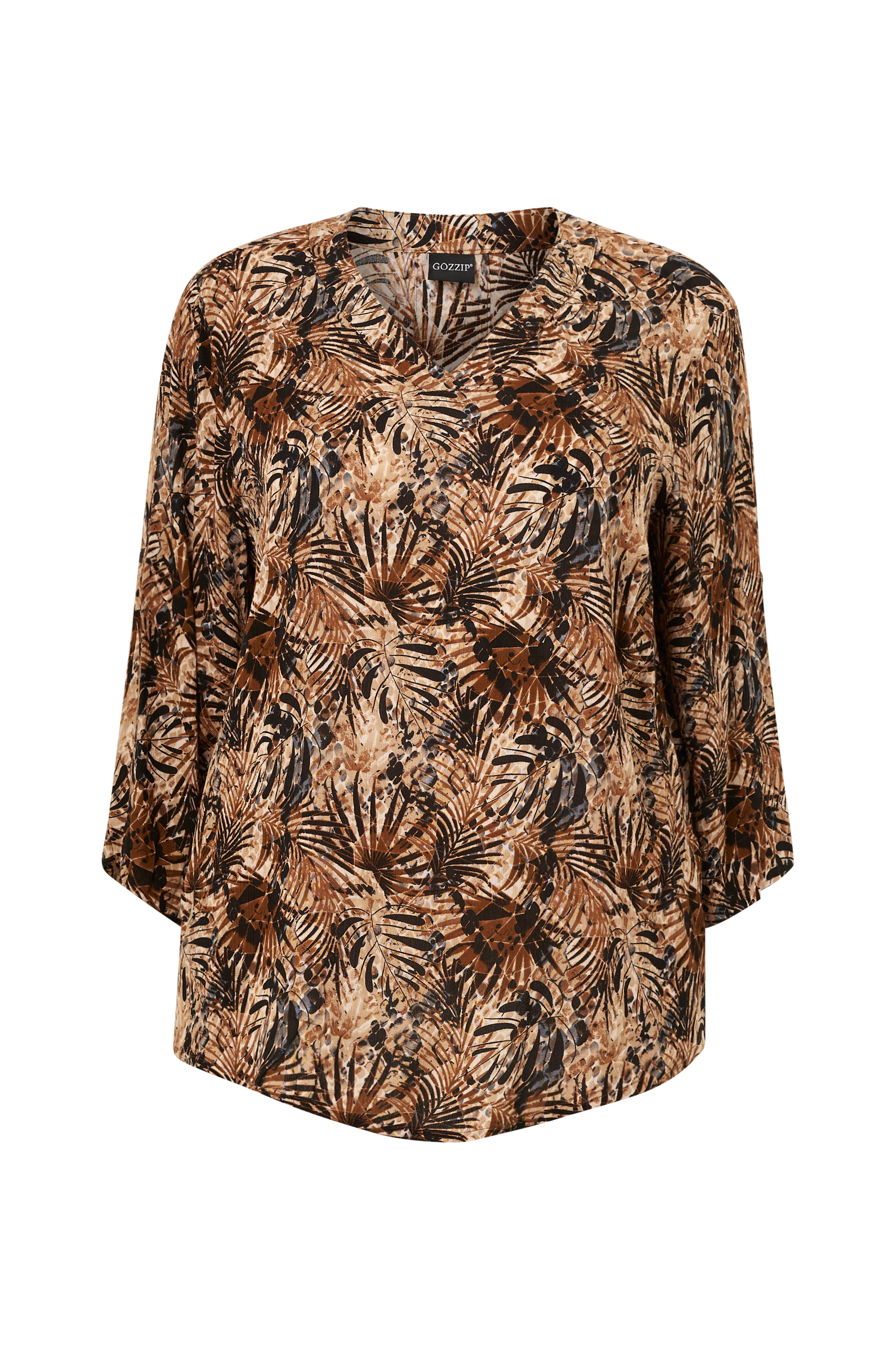 • Plusstørrelser• Bred, rett modell• V-formet hals• Bred, rett arm 3/4 lang• Avrundet hem