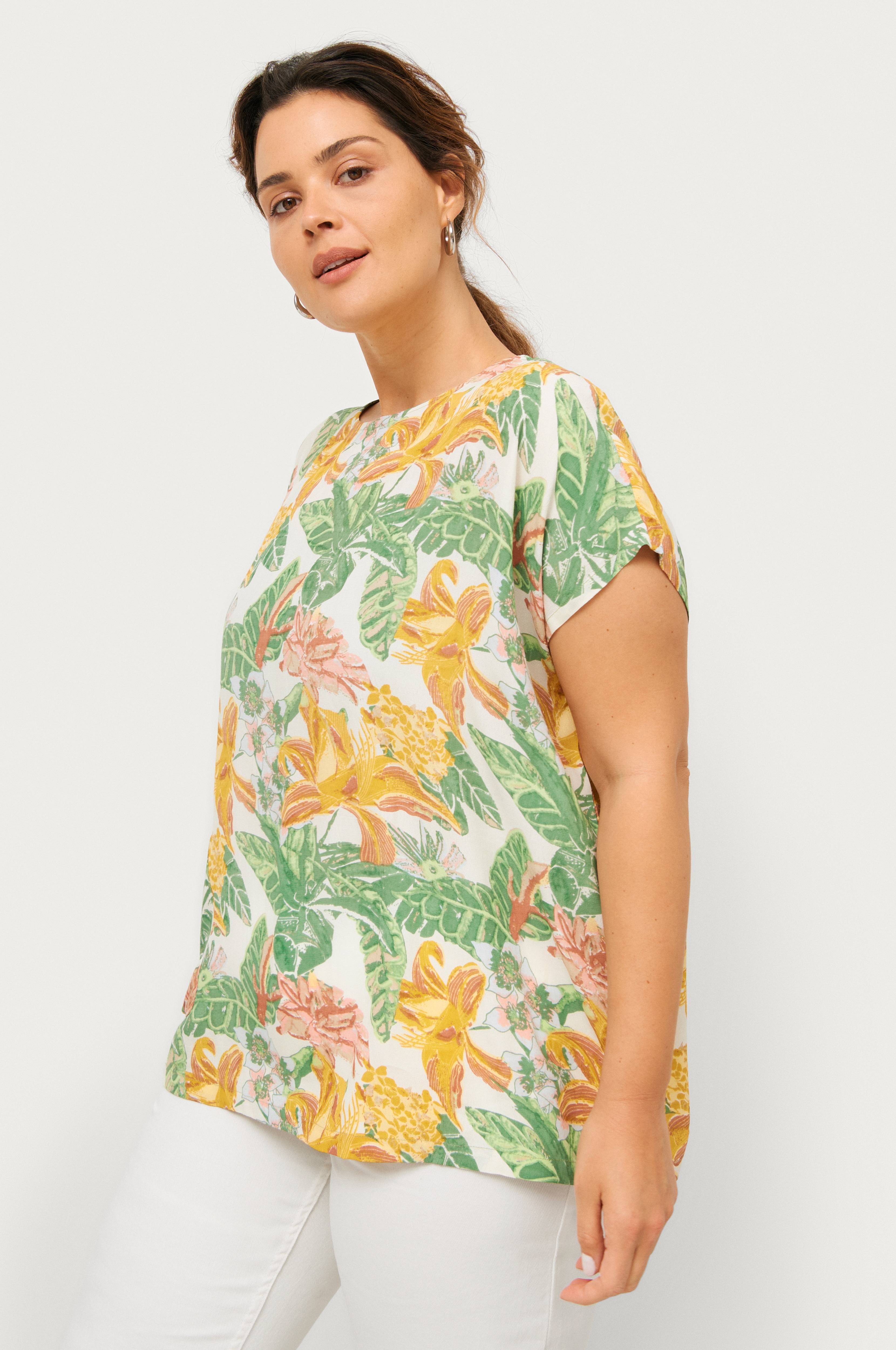 • Korte ermer• En lomme foran• Løs passform• Laget av luftig viskose• Plusstørrelser