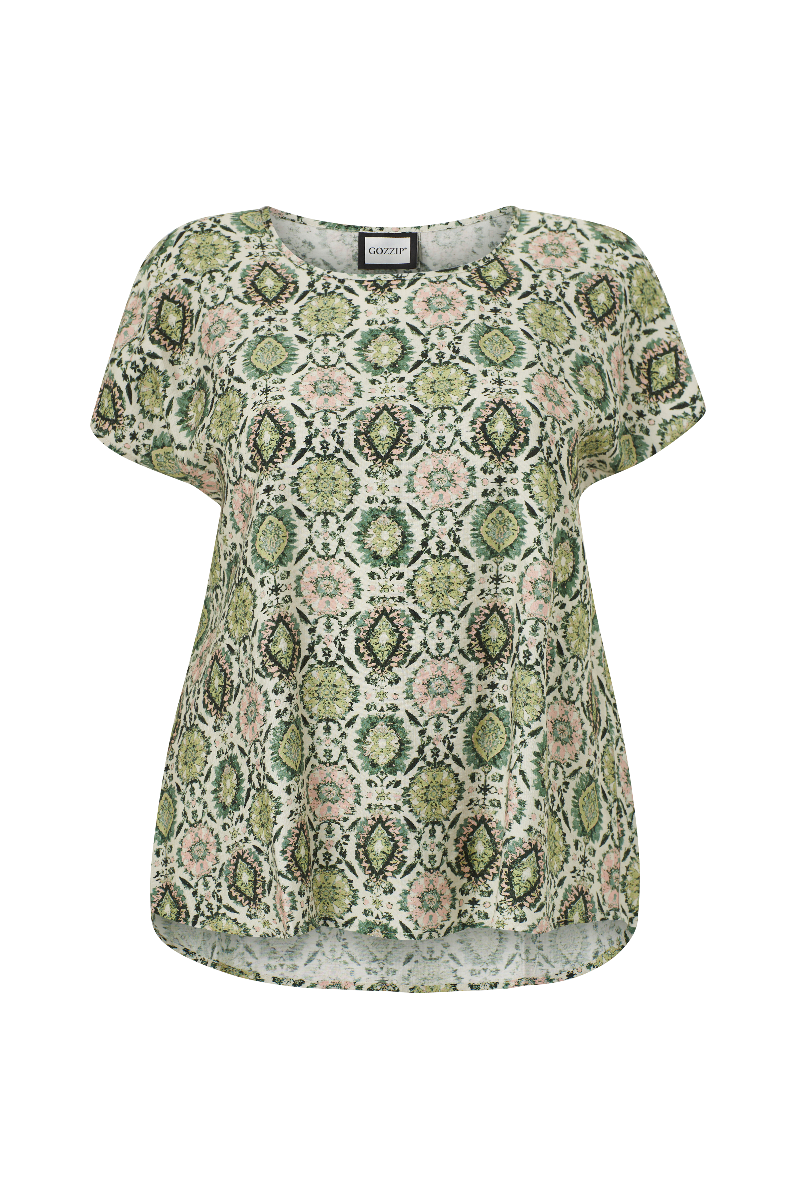 • Bluse i lett, mønstret viskosemiks• Avrundet hals• Korte holkermer• Lett avrundet hem• Plusstørrelser