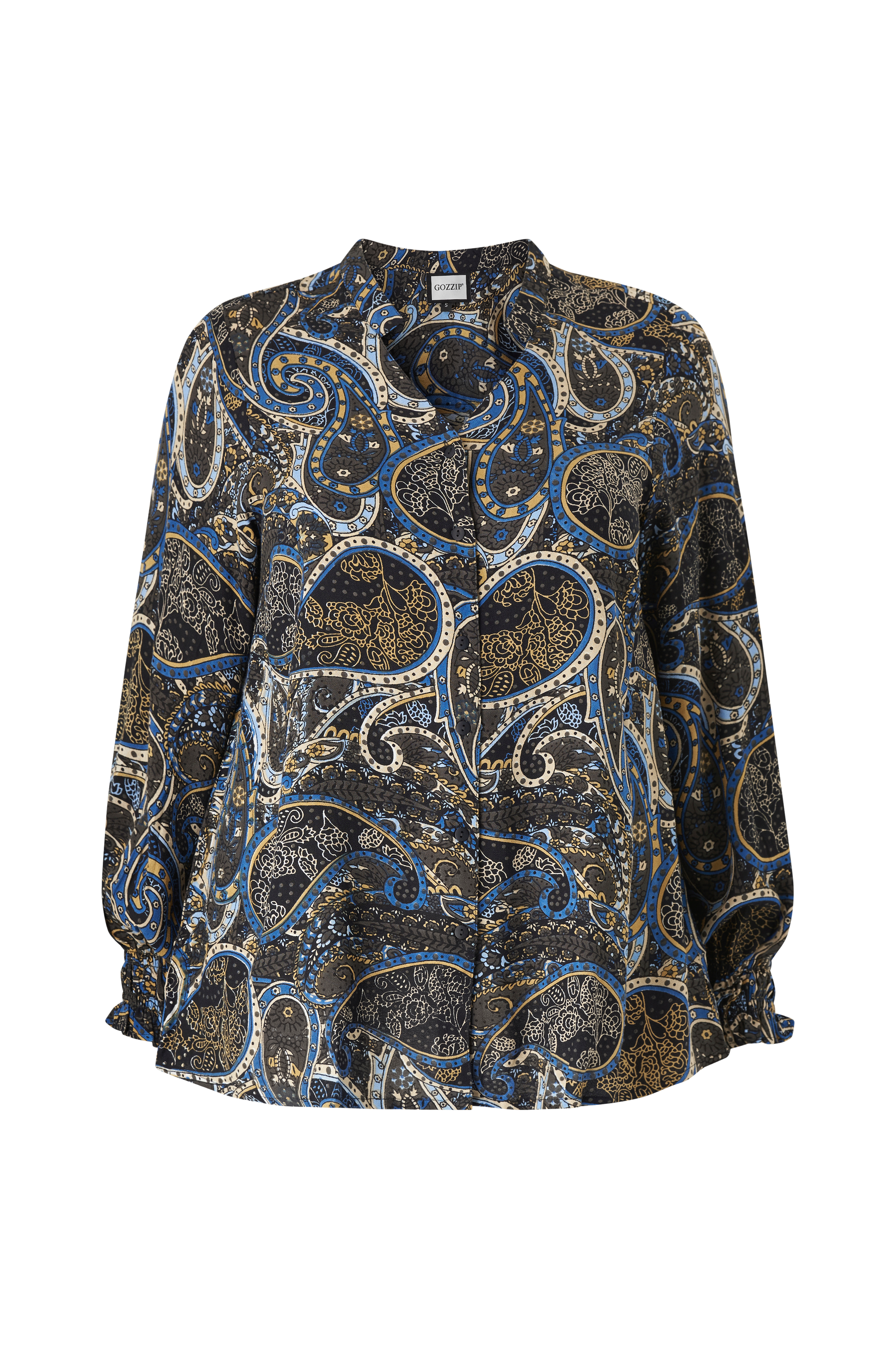 • Bluse i viskose med trykket mønster• V-formet hals• Lange ermer med elastiske sømmer ved armenden• Knapper foran• Plusstørrelser