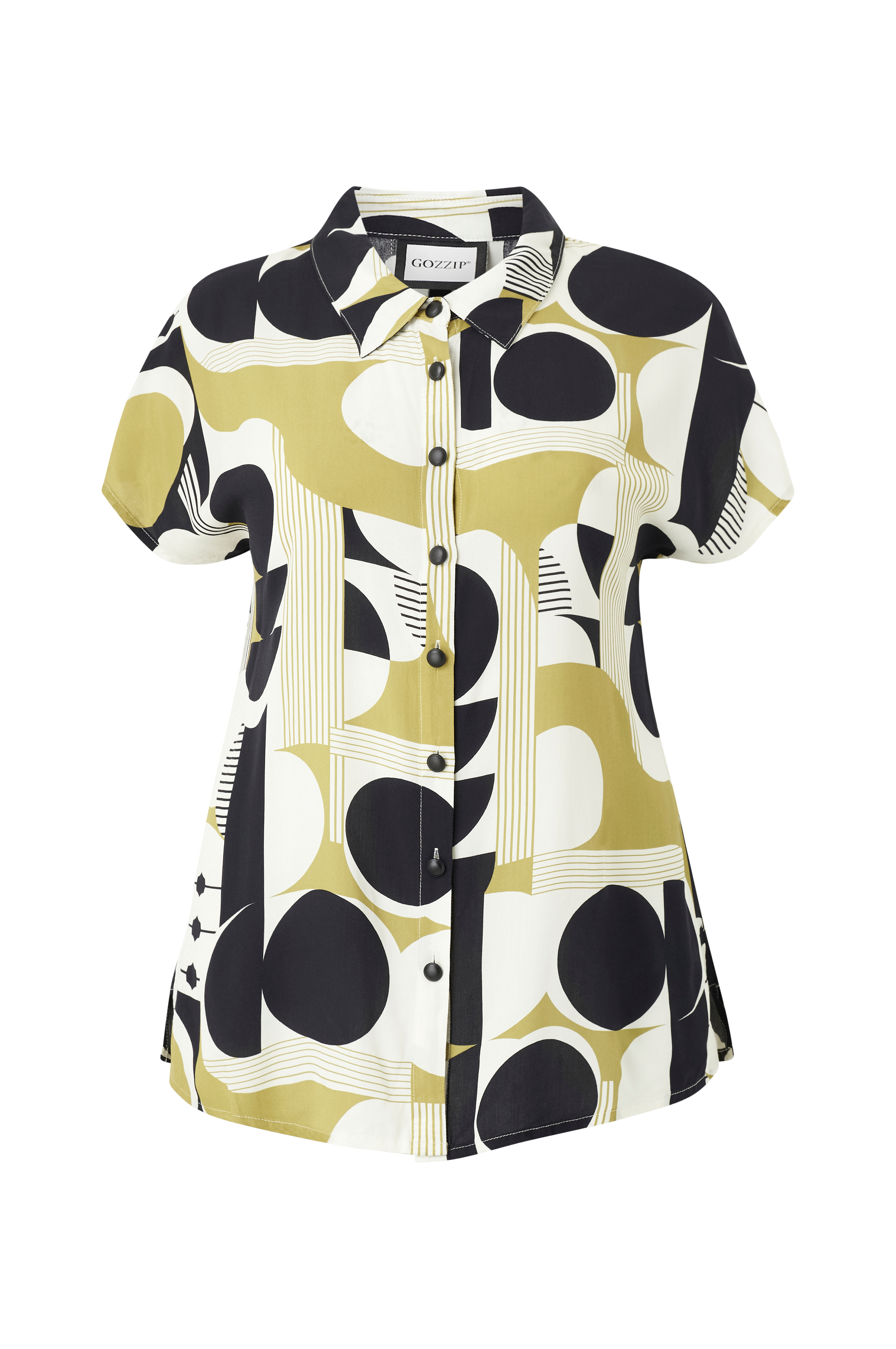 • Mønstret bluse i viskose• Skjortekrage• Korte ermer• Knappelukking• Skjær nede i sidene• Pluss-størrelser