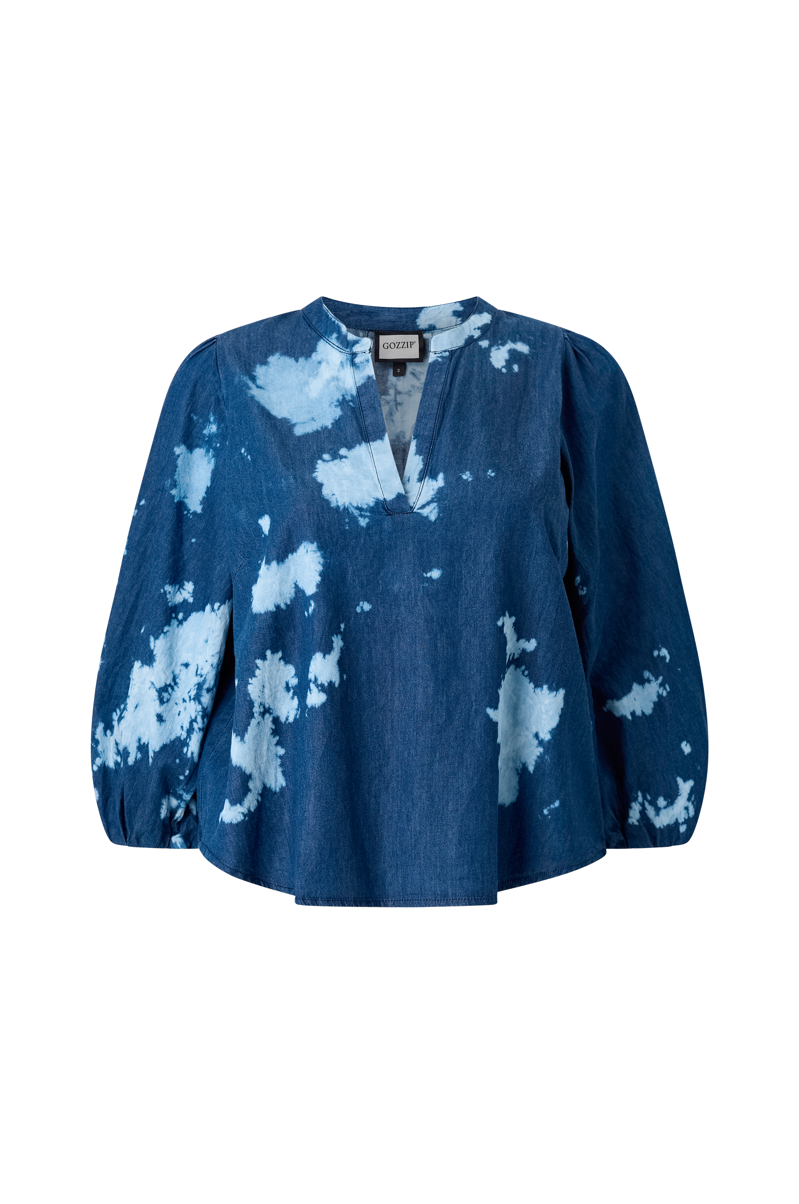 • Bluse i denim• V-hals• Ballongermer 3/4 lang• Avrundet linning• Pluss-størrelser