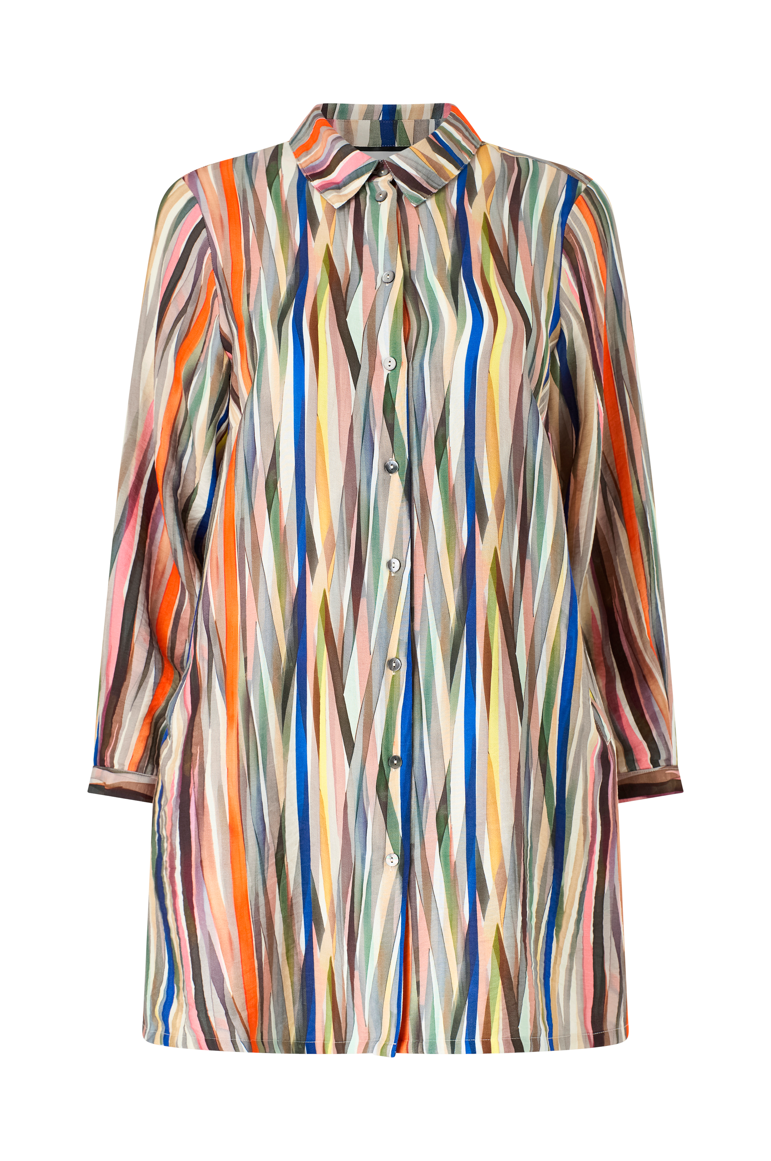 • Mønstret tunika i viskosemiks• Krage• Lange ermer• Knapper i ermeslutten• Knappelukking• Sidelommer• Pluss-størrelser• Lengde: 94 cm i størrelse S