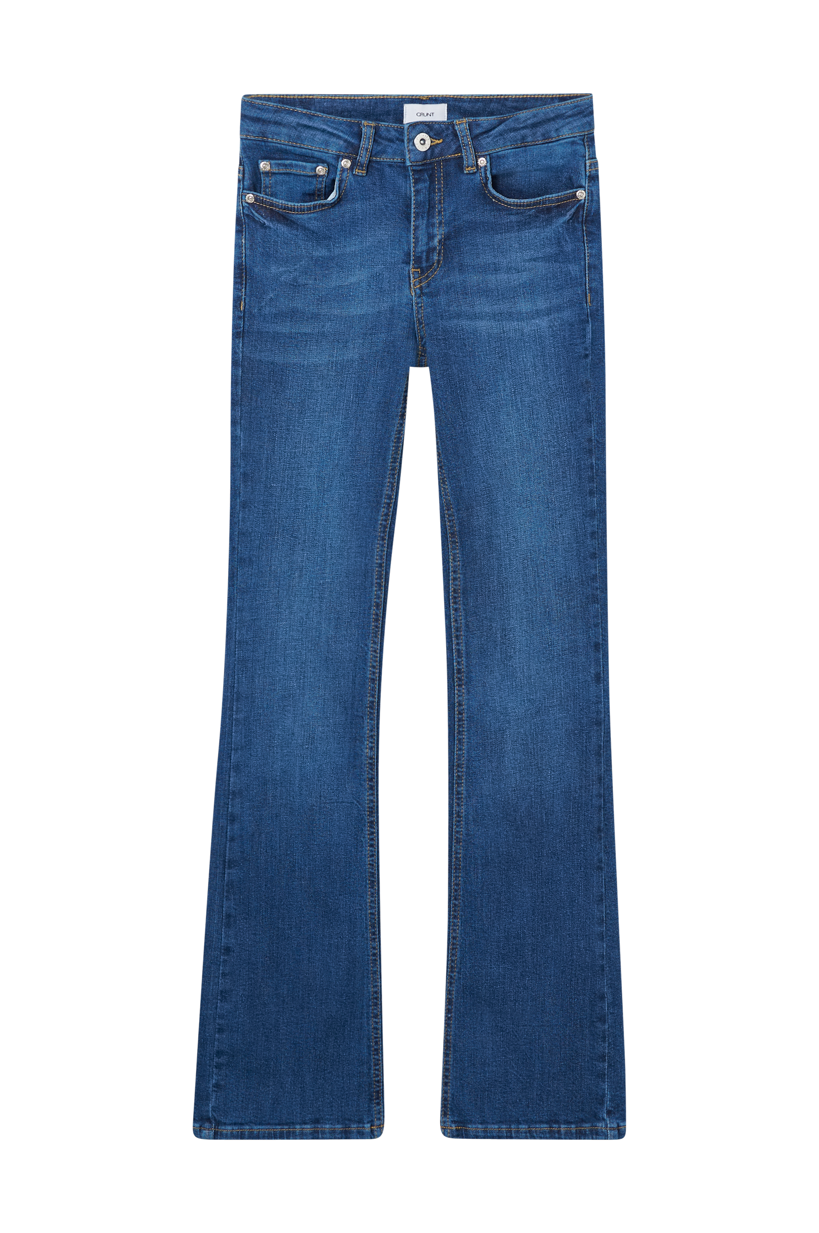 • Stretch-denim• Lav, justerbar midje• Utsvingte bein• Femlommemodell• Lynlås