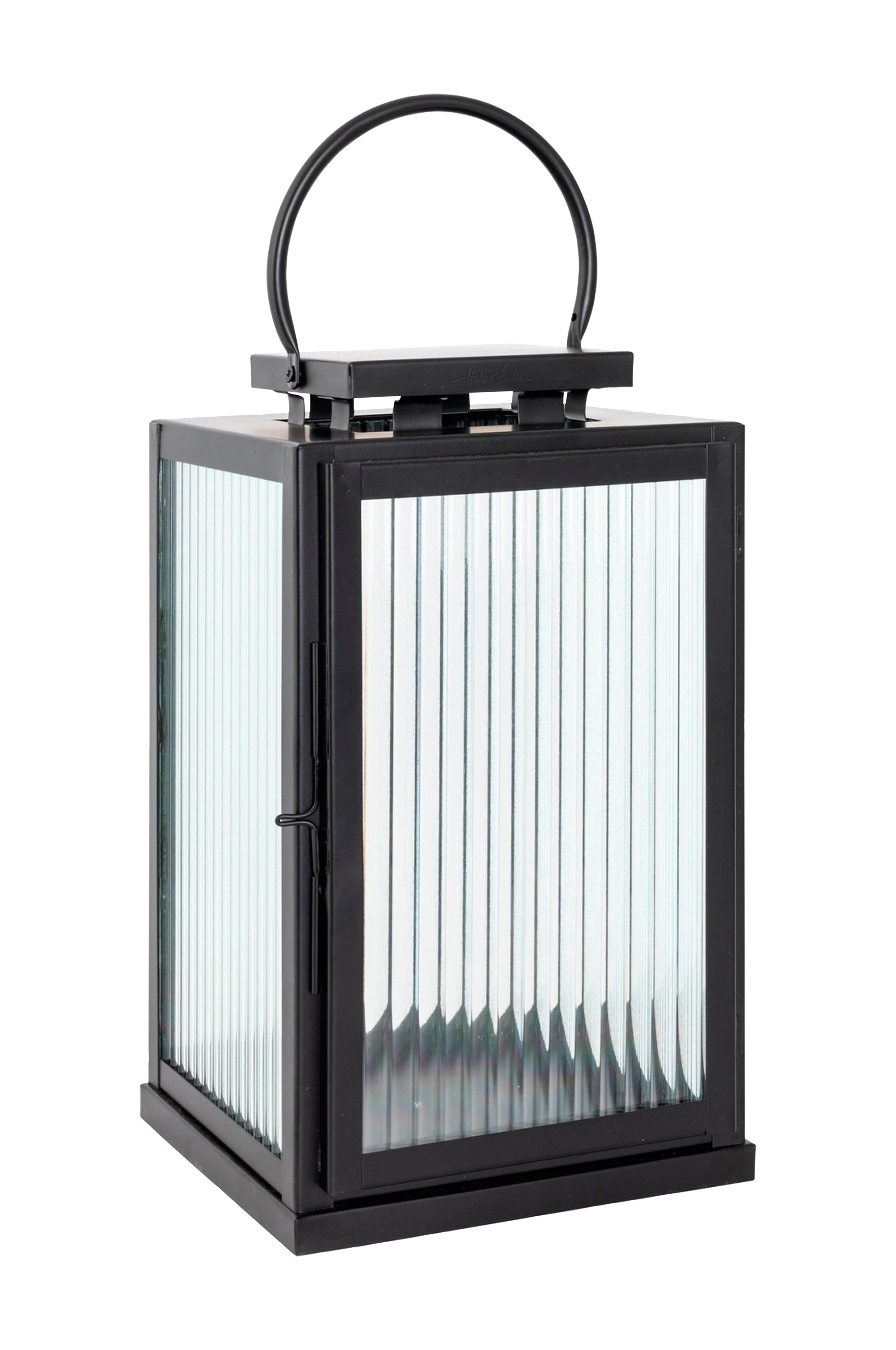 Vakker lykt fra Halvor bakke i svart, rustfritt stål med riflet glass. Denne lykten er perfekt for utendørs bruk hele året, og ser flott ut på dørterskelen, i hagen eller hvor du måtte ønske det. Lykten er også tilgjengelig i en større størrelse. Laget av rustfritt stål og riflet glass. Den er værbestandig og slitesterk, og leveres i to ulike høyder: 36 cm og 56 cm