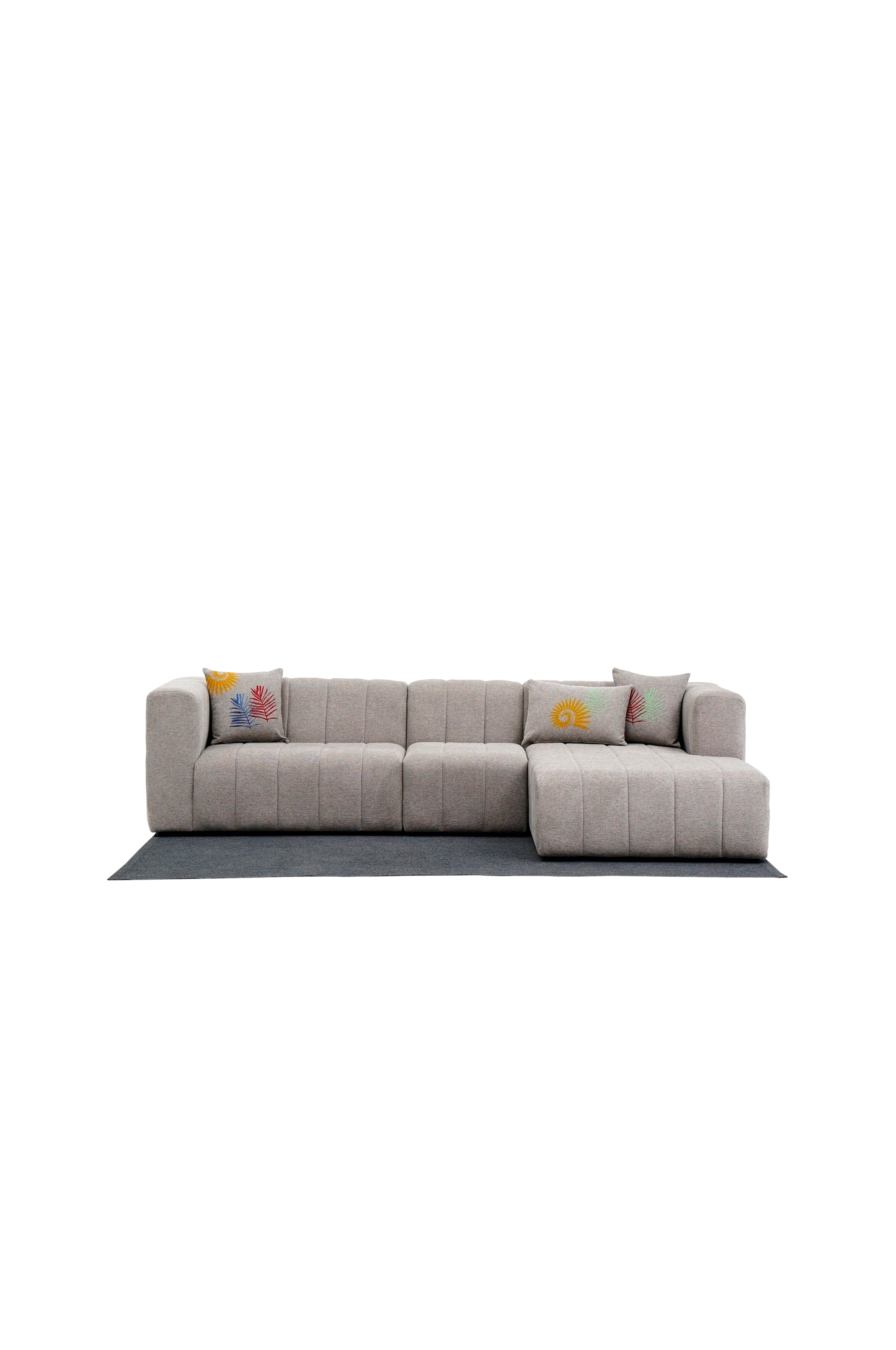 Ramme: bøketre stoff: 100 % polyester (stoff med chenillestruktur) 2-seters modul: bredde: 128 cm høyde: 73 cm dybde: 90 cm høyde seterygg: 40 cm setehøyde: 42 cm setedybde: 61 cm benhøyde: 3 cm armtykkelse: 25 cm 5 ben 1-seters modul: bredde: 61 cm høyde: 73 cm dybde: 90 cm 4 ben sengens størrelse: 160 x 110 cm sengens innvendige størrelse (uten armer): 135 x 107 cm 5 ben 30 kg/m3 skum for sittende 26 kg/m3 skum for rygg ben i hardplast