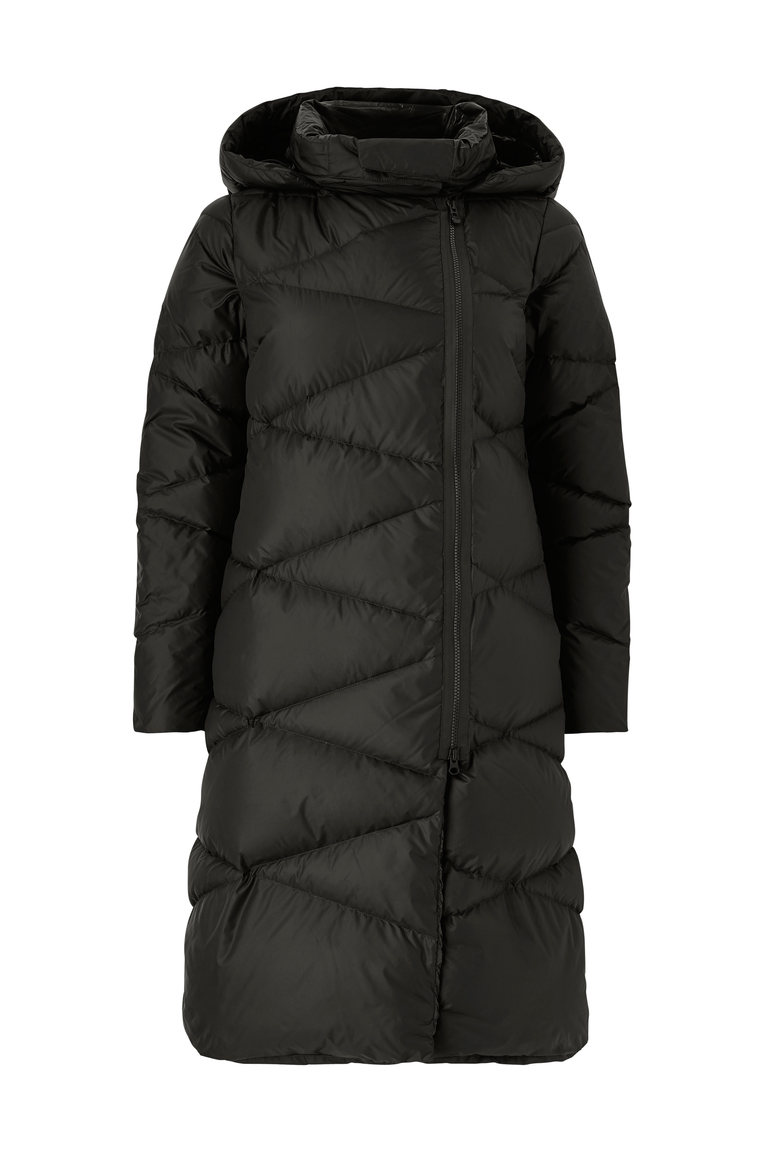 Dunkåpe W Tundra Down Coat fra Helly Hansen holder deg varm selv på kalde dager. Ytterstoff med PFC-fri, vannavvisende behandling. Sporbar dun fra Allied, 80/20, fyllgrad 600. Den store, faste hetten har snøring med stoppere. Primaloft®-fyll ved skuldrene som forhindrer at kulden sniker seg inn. Høy krage og forskjøvet toveis YKK® WR-glidelås. To lommer og en innerlomme, alle med trykknapp. Strikk i ermekantene. Lengde ca. 104 cm i str S.