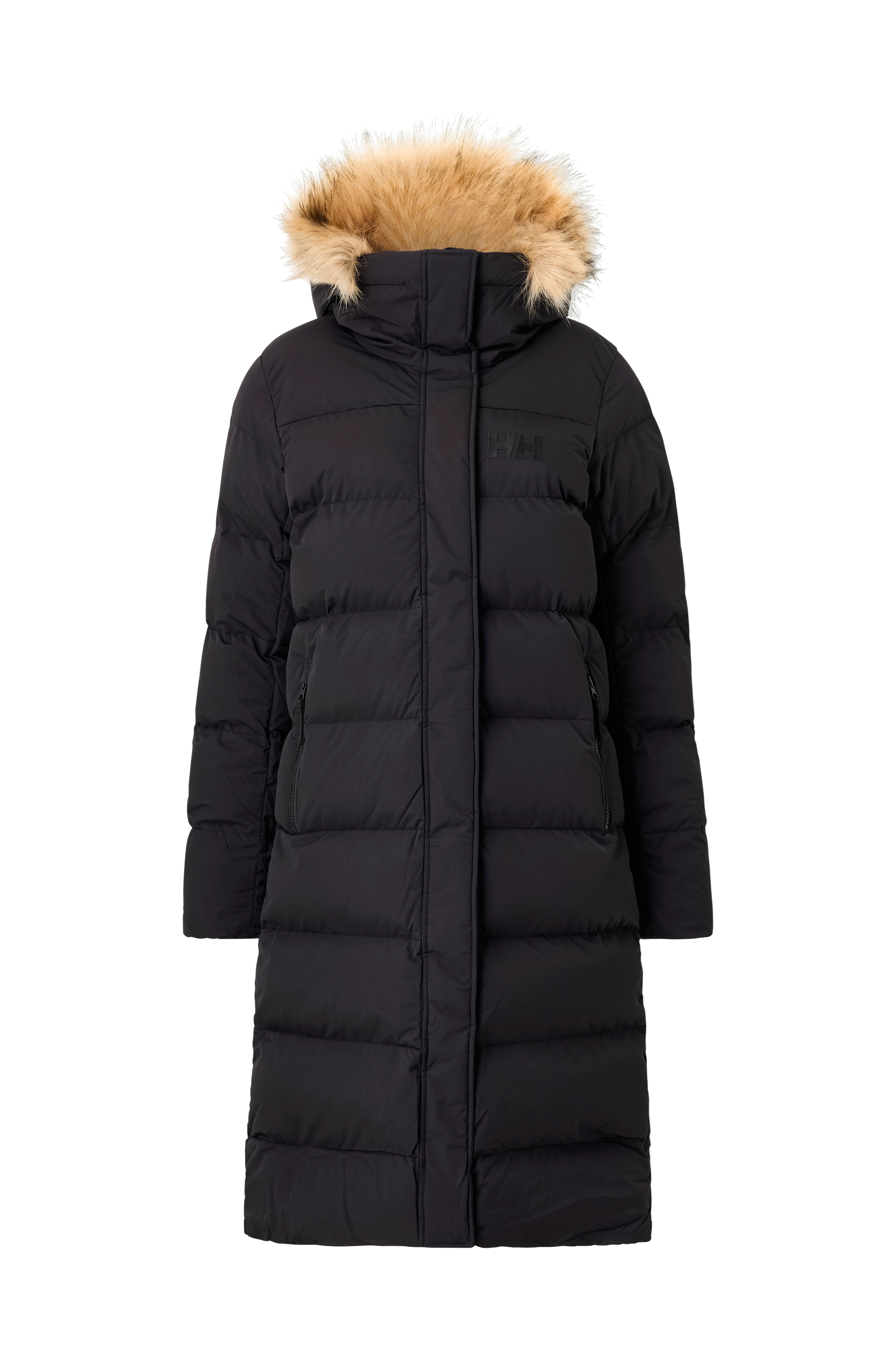 • Lang, polstre parka • Fast, justerbar hette med avtagbar fuskepels • Fleece-fôr innsiden av kragen • Brodert logo på brystet • Glidelås med klafflomme og trykknapper • Fleece-forede glidelåslommer • Ribbet mansjetter i ermeslutten • Lengde: 106 cm i størrelse S
