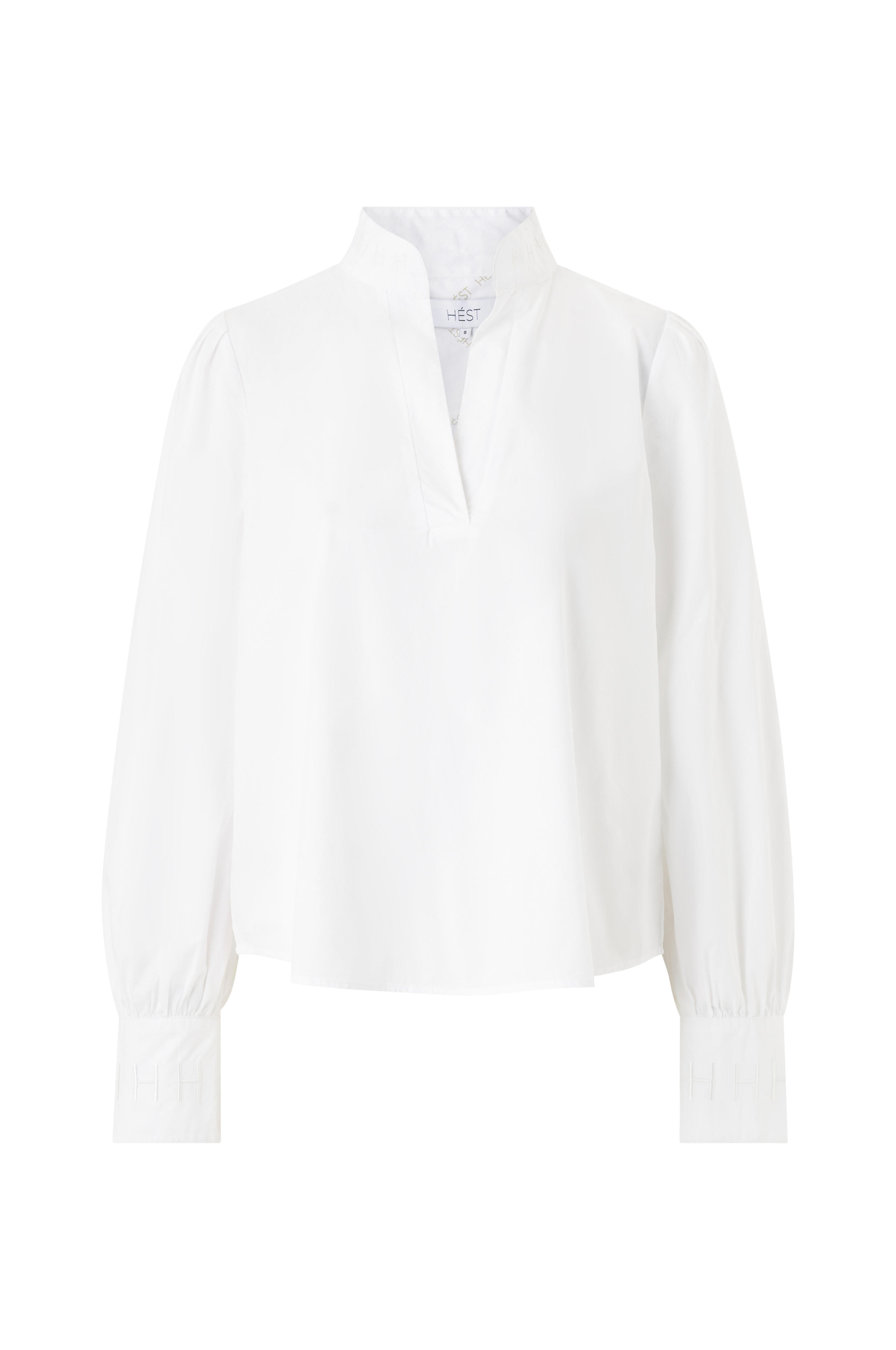 • Bluse med broderte detaljer• V-hals• Lange puffermer• Mansjett i ermeslutten med to knapper• Avrundet hem