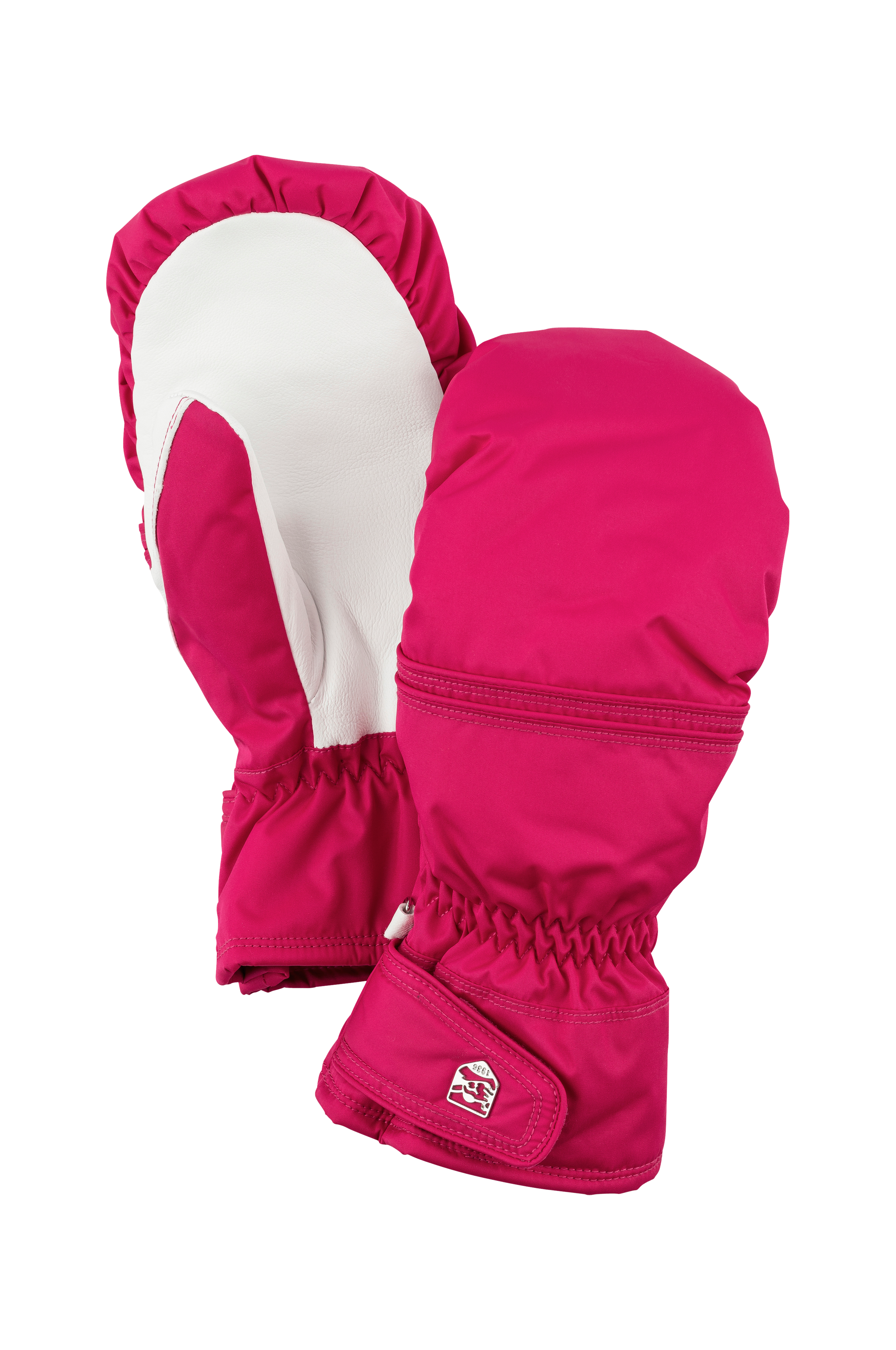 Votter Primaloft Leather Female Mitt fra Hestra, myke og varme votter med isolering av Primaloft som gir dunfølelse. Yttermateriale i vindtett, vannavvisende og ventilerende Micron polyestervev. Forsterket grep i skinn i håndflaten. Fôr i myk, børstet trikot. Strikk rundt håndleddet og regulerbar borrelås nederst.