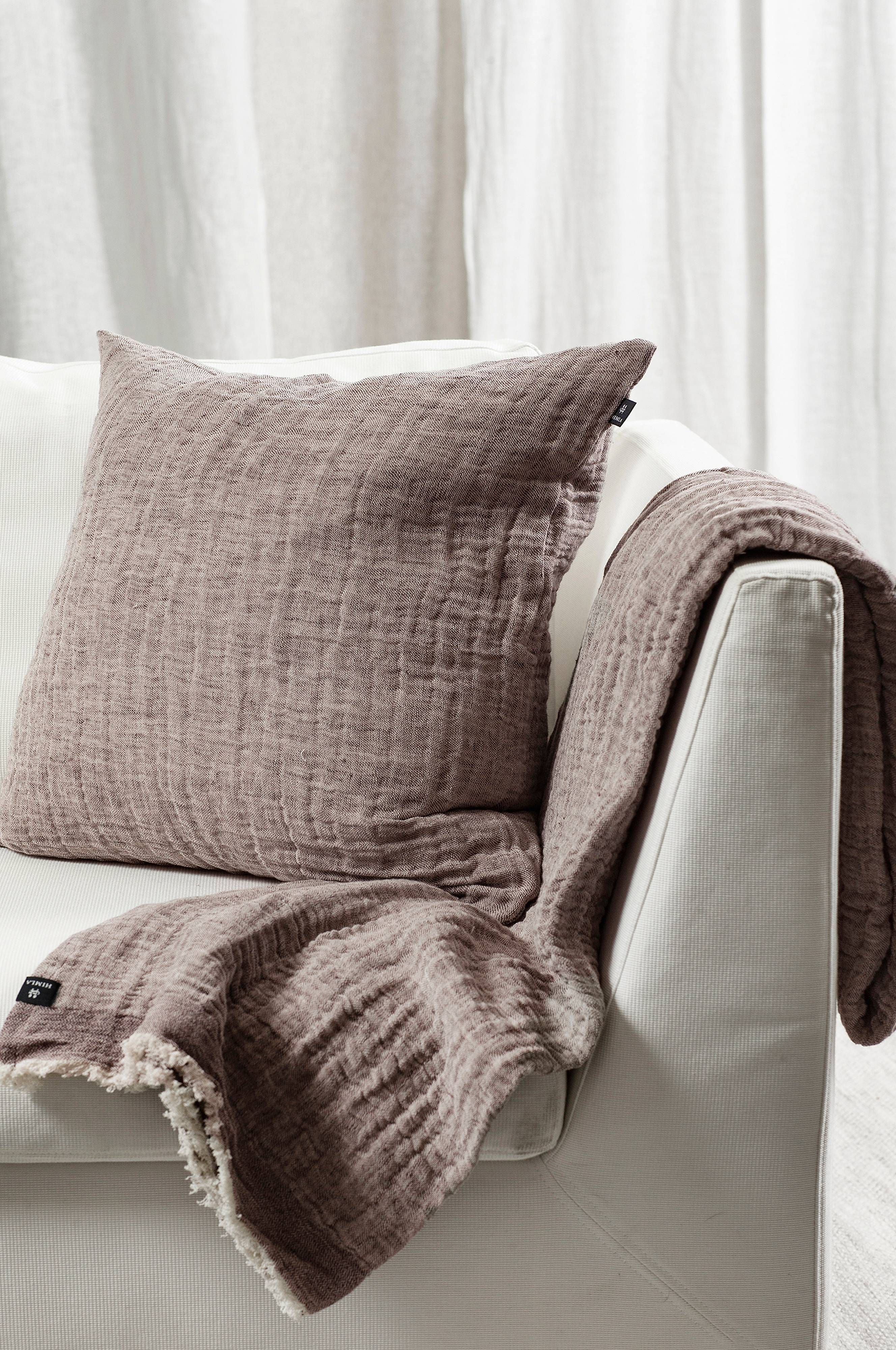 Emylin er et bonded dobbeltvevd halvlin som er vasket for å få et mykt, krøllete utseende. Pleddet har en søm langs langsiden og frynser på kortsidene. Emylin pleddet har en nøytral offwhite bakside og en farget forside. Maskinvaskes på 40 °C skåneprogram, tørkes i tørketrommel på lav varme, vaskes separat. Kan krympe 1-2 %.