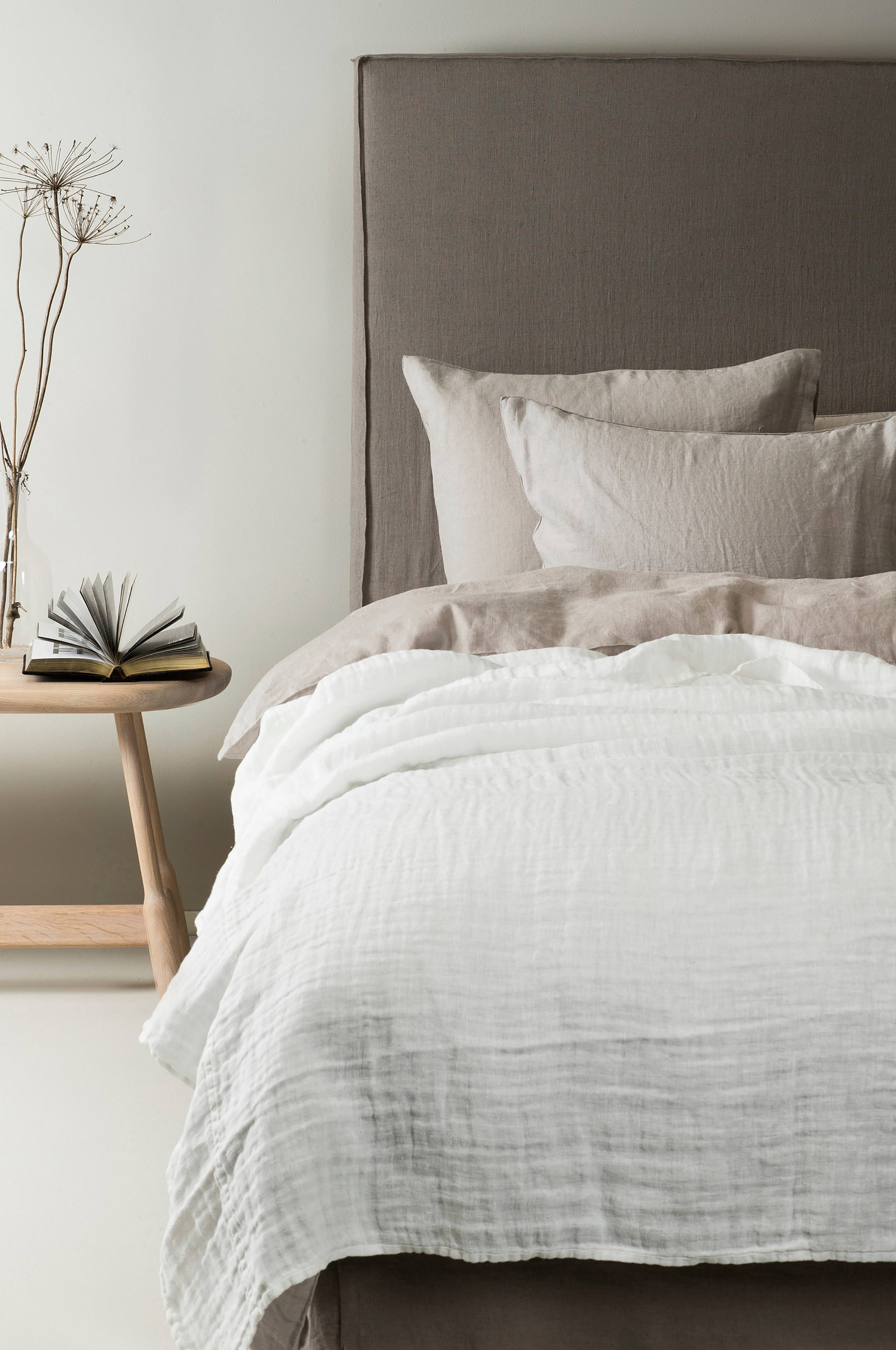 Sengeteppe i bonded dobbeltvevd lin, vasket for å gi et krøllete utseende. Sengeteppet har kontrastfargede sider i ulike farger, noe som gjør det mer iøynefallende. Den krøllete teksturen gir et avslappet og innbydende uttrykk og er lett å slenge på sengen. Hannelin sengetepper er tilgjengelige for enkeltsenger og dobbeltsenger og kommer i flere farger og fungerer fint å kombinere med pledd og puter fra samme serie for å skape en skikkelig koselig seng. Sengeteppet har doble sømmer langs hver side; på størrelse 160x260 er sømmen plassert 15 cm fra sidekanten og på størrelse 260x260 er sømmen plassert 65 cm fra sidekanten. Maskinvask 40 °C skåneprogram, tørketrommel på lav varme, vaskes separat. Kan krympe 1-2 %.