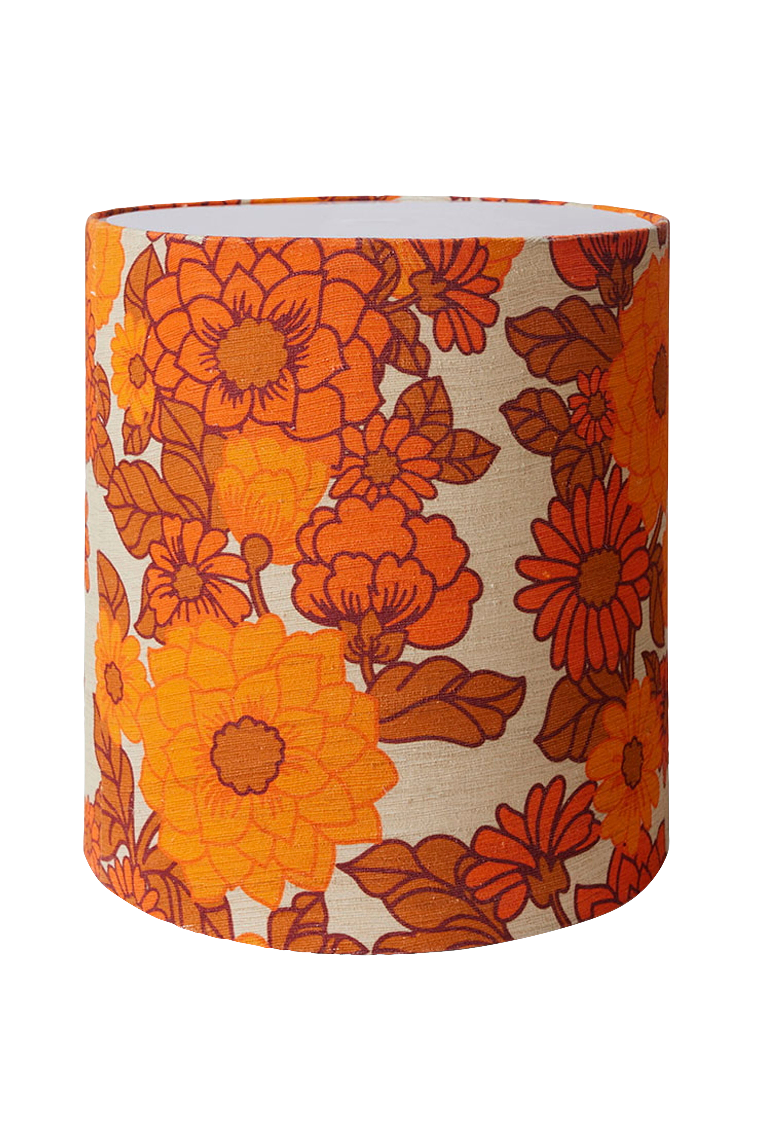 Vi presenterer lampeskjermen Petal - et strålende tilskudd til lampekolleksjonen vår som garantert vil tilføre rommet ditt den livlige energien fra retrotiden. Denne lampeskjermen omfavner fortidens dristige estetikk og har et livlig blomstertrykk i en levende oransje fargetone som fanger essensen av tilbakeblikkets sjarm og moderne design fra midten av århundret.