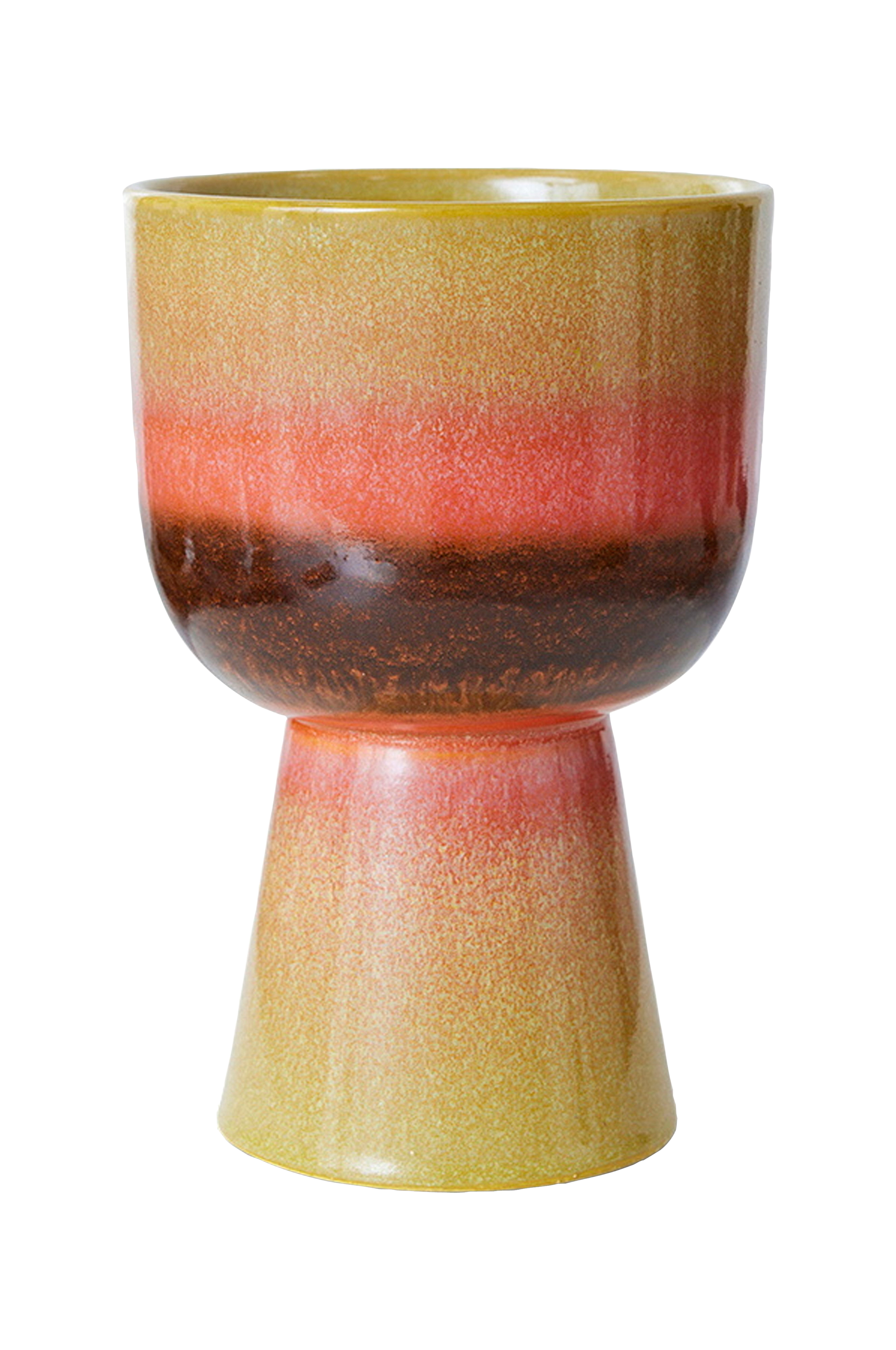 Denne håndglaserte blomsterpotten er et subtilt nikk til 70-tallskeramikken vår, og vil være et fargerikt tilskudd til vinduskarmen, skapet eller sidebordet ditt. Den blanke, reaktive glasuren gir potten dybde og får fargene til å sprudle - nå trenger du bare å velge din favorittplante for å gjøre den helt perfekt.