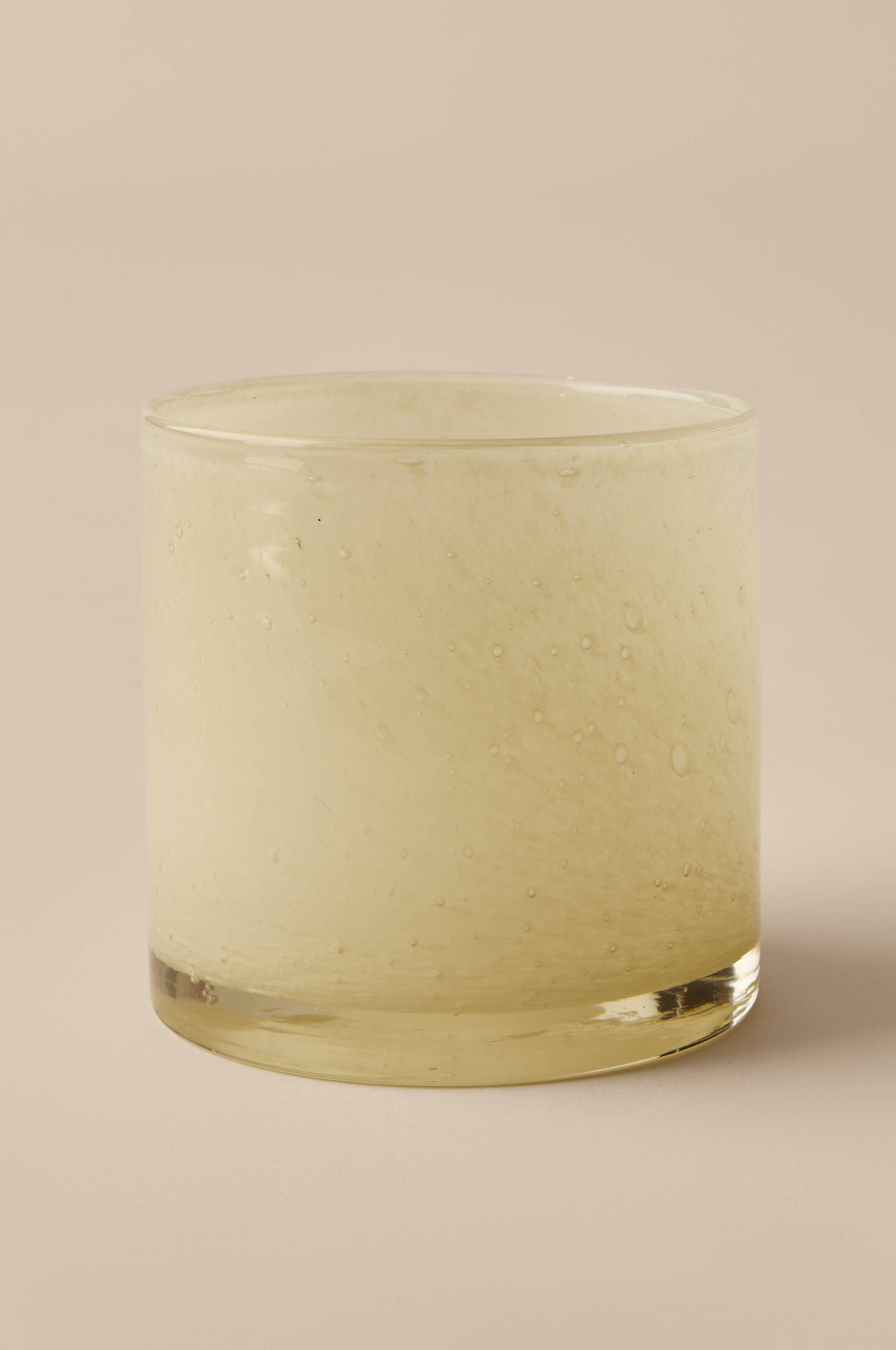 Lyslykt eller liten krukke i glass. Fargen har vakre skiftninger og glasset har bobler i seg som skaper et fint uttrykk og et stemningsfullt skinn. Teknikken gjør at ujevnheter og fargeforskjeller forekommer og hver lyslykt blir unik. Høyde ca. 15 cm, Ø ca. 15 cm. Rengjøres for hånd.