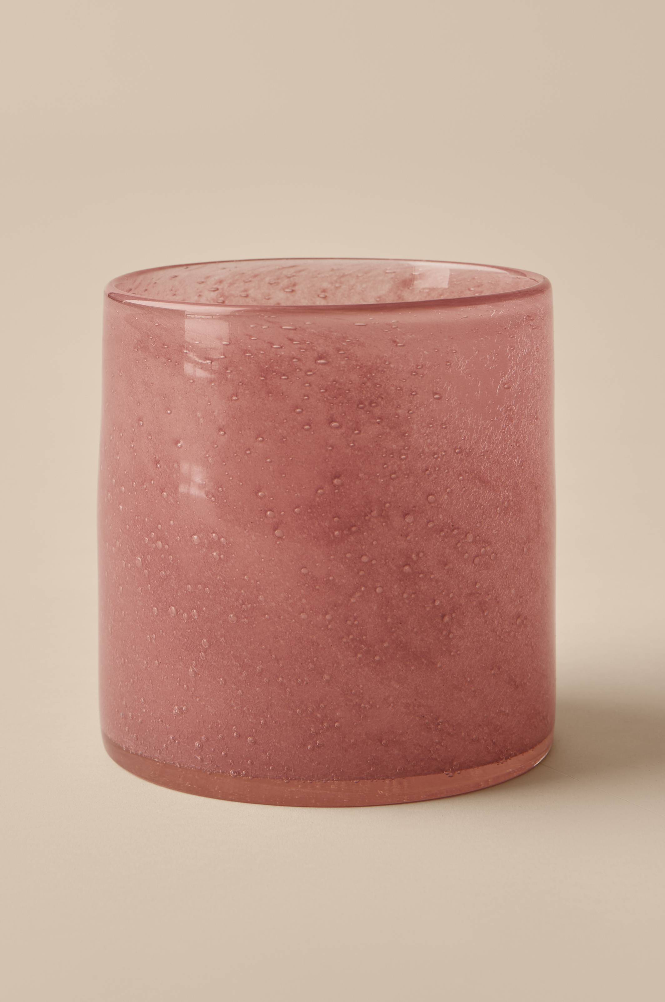 Lyslykt eller liten krukke i glass. Fargen har vakre skiftninger og glasset har bobler i seg som skaper et fint uttrykk og et stemningsfullt skinn. Teknikken gjør at ujevnheter og fargeforskjeller forekommer og hver lyslykt blir unik. Høyde ca. 15 cm, Ø ca. 15 cm. Rengjøres for hånd.