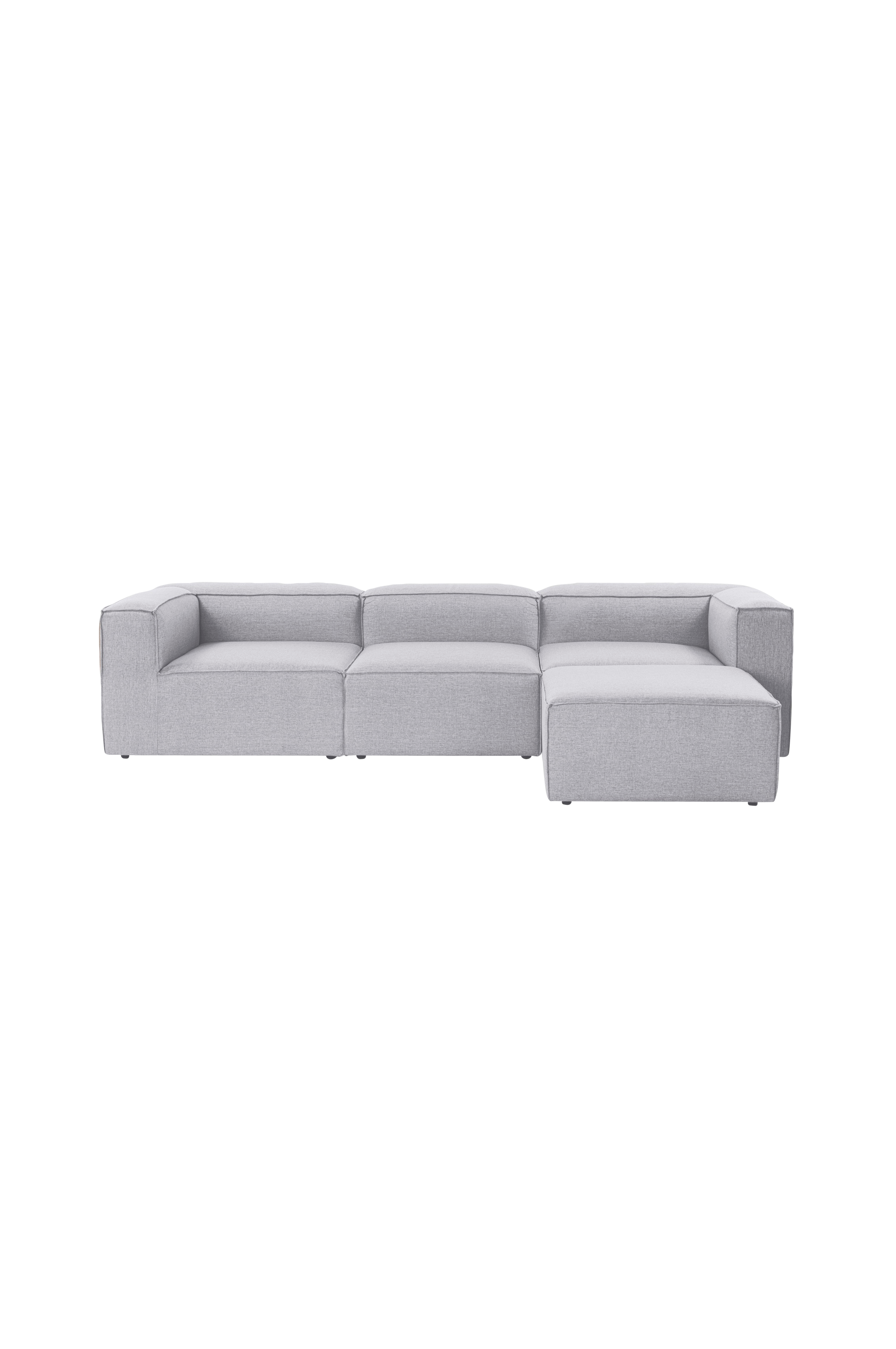 Ramme: 100 % avenbok stoff: 100 % lin 32 kg/m3 skum for sitteplasser Ben i plast bredde: 296 cm dybde: 185 cm høyde: 66 cm setehøyde: 43 cm setebredde: 248 cm bredde på armlener: 24 cm benhøyde: 3 cm