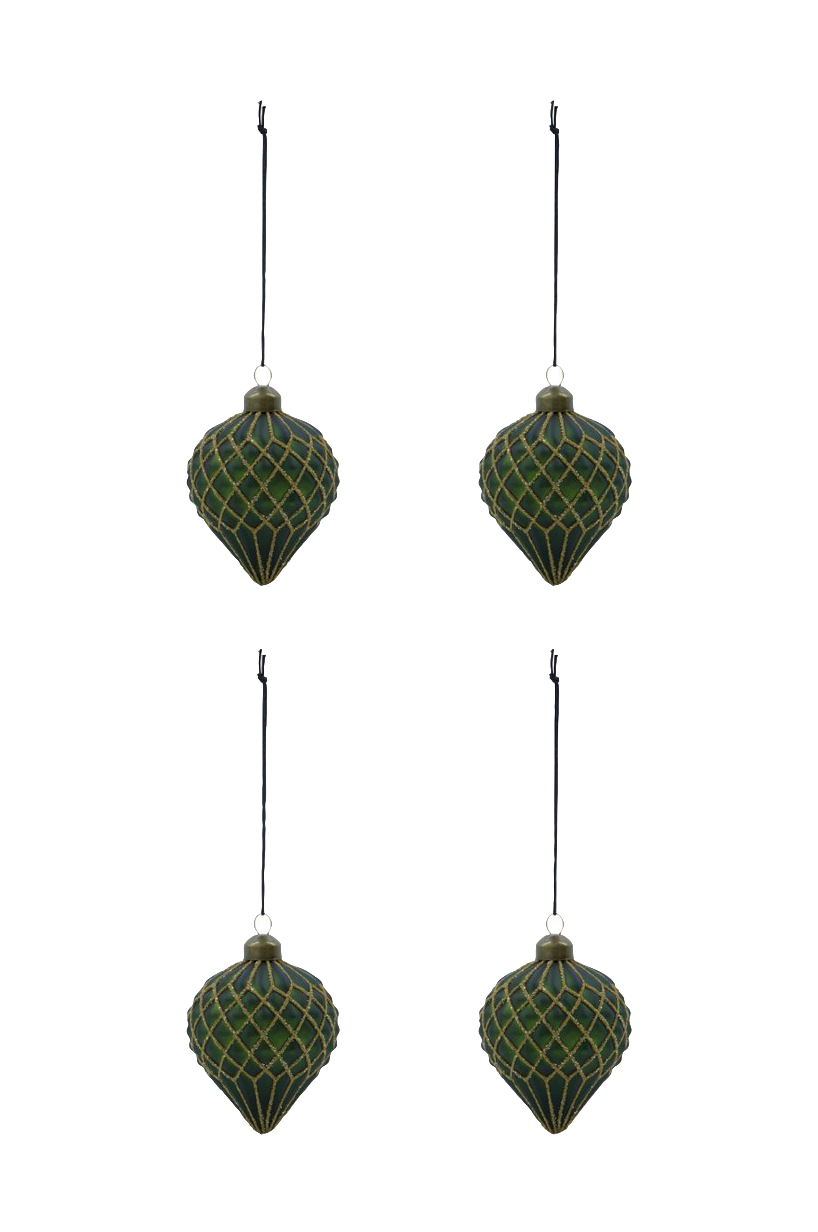 Denne pakken med 4 munnblåste kuler fra House Doctor kan måle seg med de beste antikvitetsfunnene. Glittermønsteret, formen og den klassiske grønnfargen er alle kjennetegn på et vintageinspirert design som du enkelt kan mikse med verdifulle arvestykker. Hold deg til det grønne, eller bland med farger og mønstre du liker for å skape et personlig og muntert juletre. Kulene er like fine i et brett som på en gren som henger i taket. Rengjøres med en tørr klut.