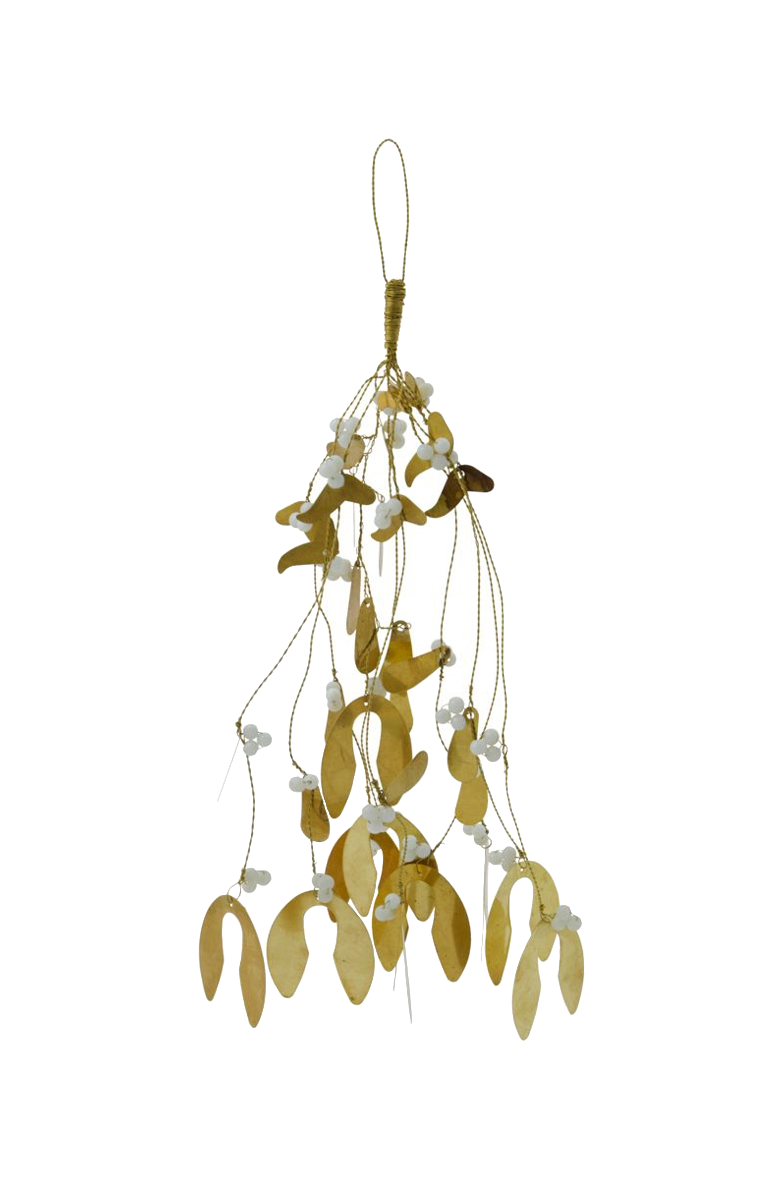 Gi julepynten din et lett og elegant preg med denne håndlagde metalldekorasjonen. De gylne bladene og de hvite perlene gir deg en utpreget mistelteinfølelse, og fargene gjør underverker i enhver stil du har i tankene i år. Enten du henger den på veggen, i taket eller pynter middagsbordet med den, bidrar House Doctors ornament til å skape en festlig atmosfære med sine klassiske farger. Bruk den til å friske opp innredningen med metaller i et lett og herlig design. Rengjøres med en tørr klut.