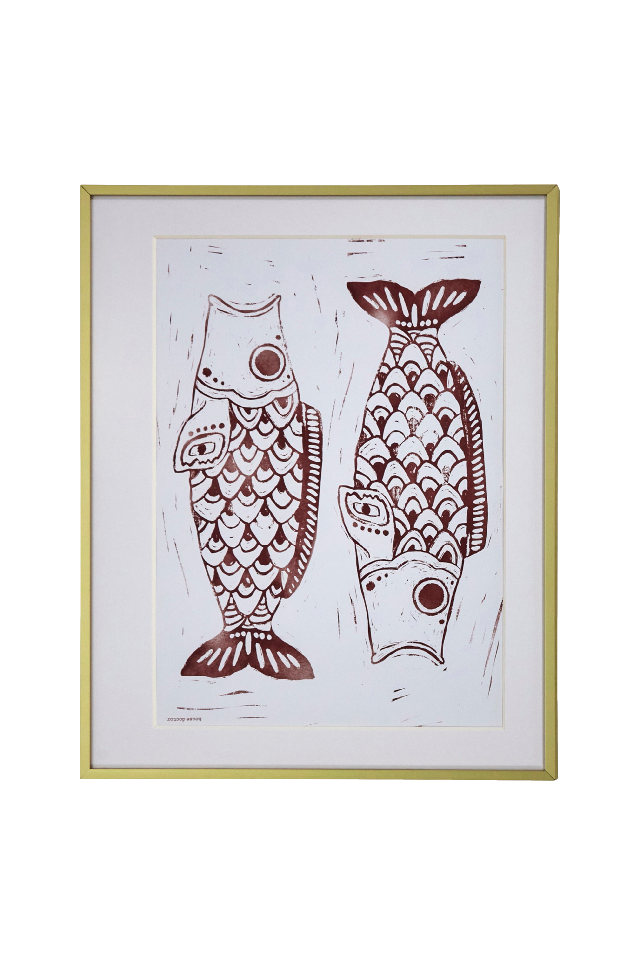 Forvandle veggene dine med dette livlige veggkunstverket. Den kunstneriske fisken i en slående fargetone er perfekt innrammet i en elegant, gyllen aluminiumsramme med hvit passepartout. Blandingen av design og farger gir liv og livlighet til bildeveggen eller kan stå alene som et fengslende fokuspunkt i hjemmet ditt. Elegant, gyllen aluminiumsramme. Kunstnerisk fiskedesign. Beskyttet med glassfront. Tilfør et snev av kreativitet til innredningen med dette iøynefallende kunstverket.