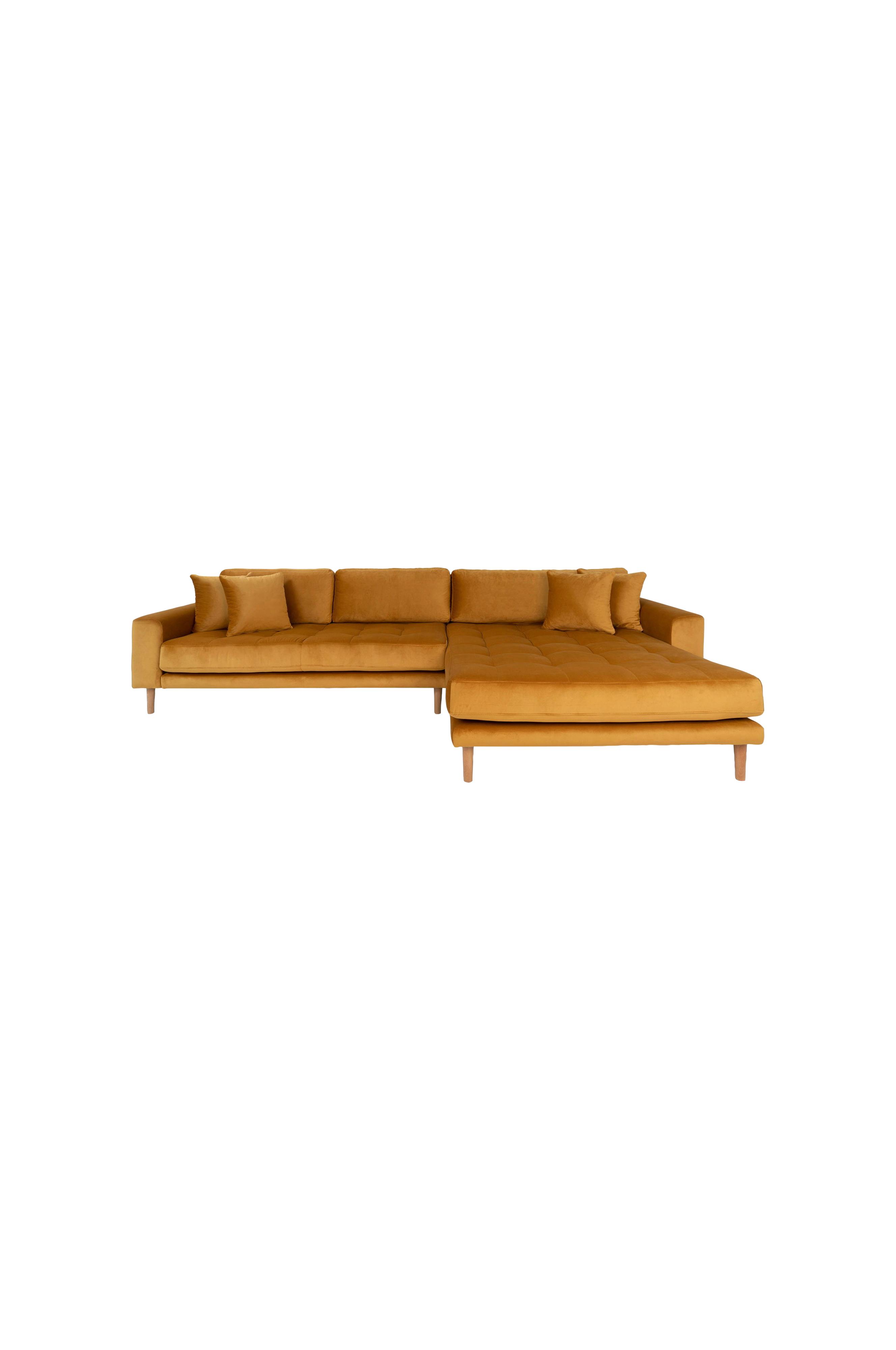 Loungesofa i fløyel med ben av tre. Umontert. Vekt 78,2 kg.