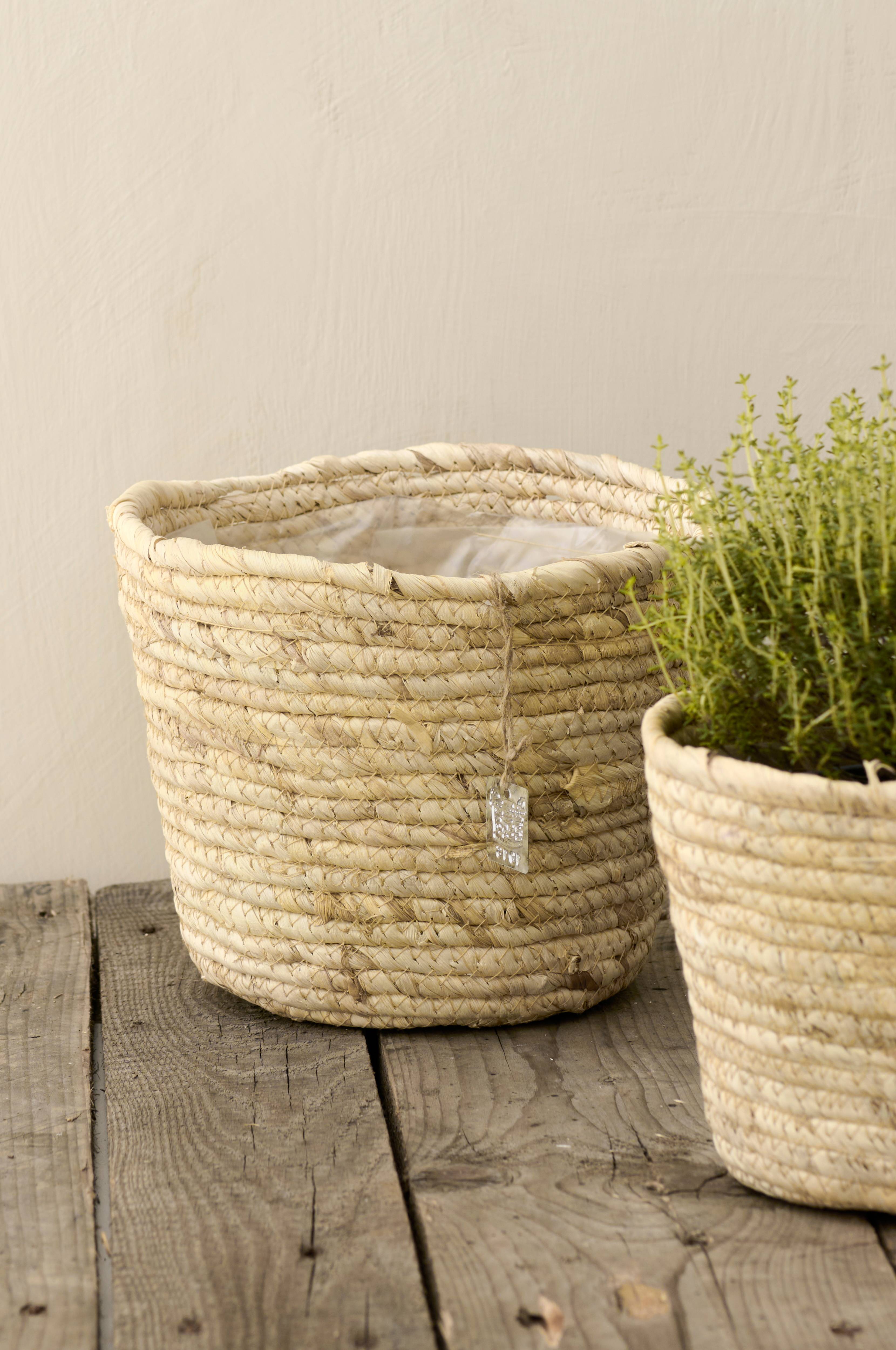 Stilren kurvpotte av bambus i naturfarge med fuktforsegling. Høyde 18, diameter 22 cm